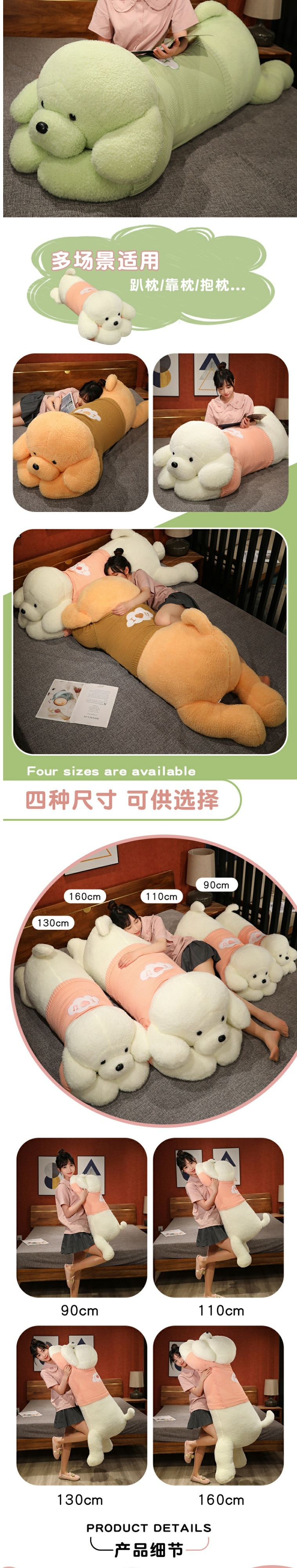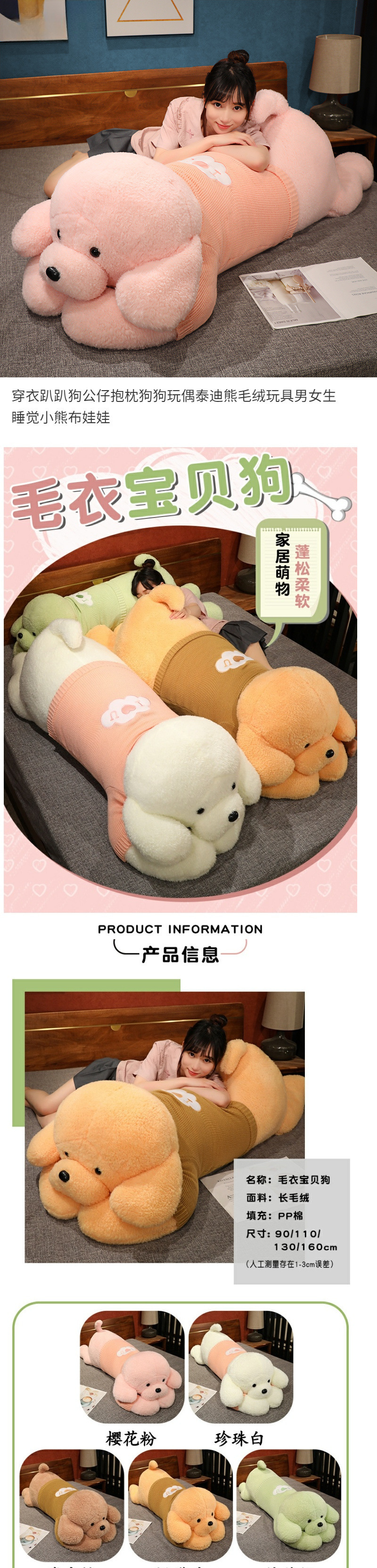 드레싱 개 인형 베개 개 인형 테디 베어 봉제 장난감 소년과 소녀 잠자는 강아지 헝겊 인형