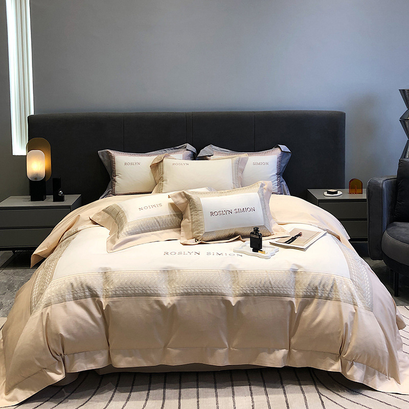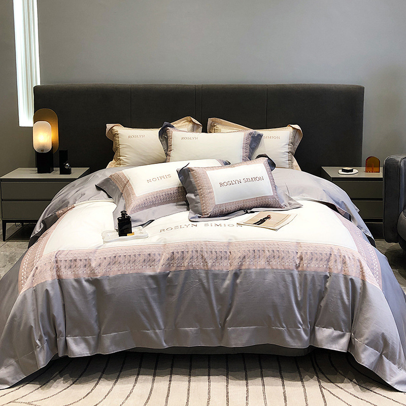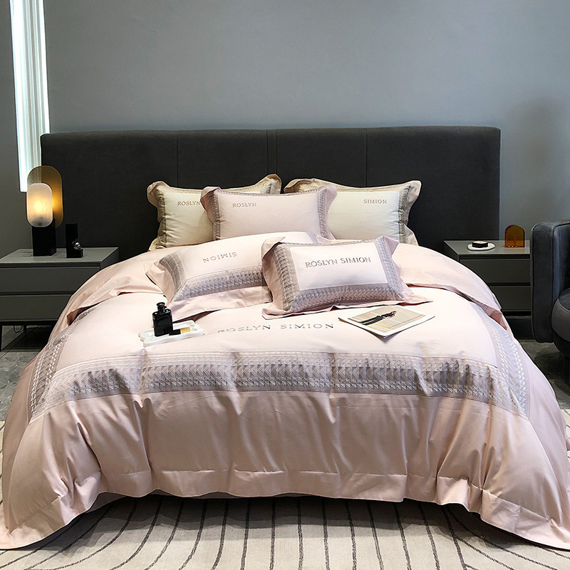 하이 엔드 라이트 럭셔리 스타일 100 면 4 피스 세트 원사 염색 자카드 가장자리를 누르는 퀼트 커버 코튼 소프트 슬리핑 네이브