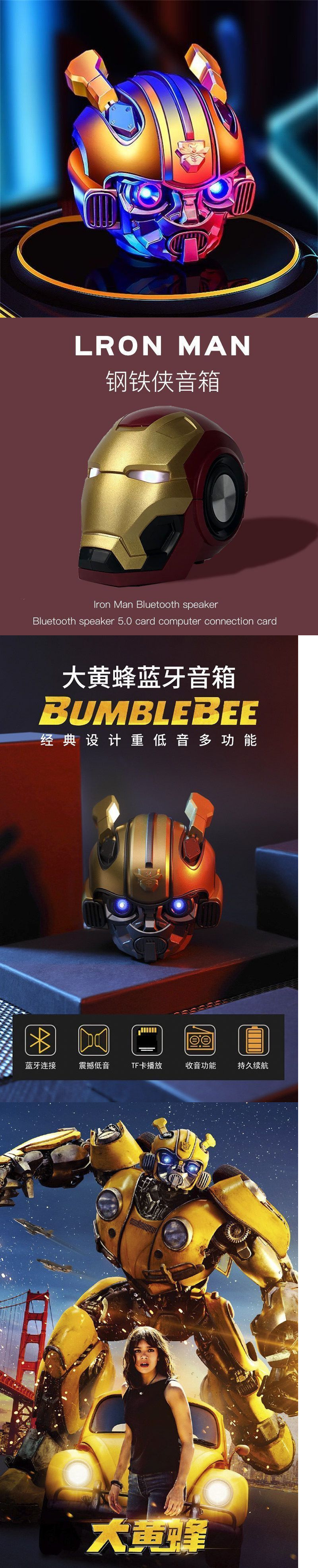 개인화 된 잘 생긴 창조적 인 꿀벌 무선 블루투스 스피커 큰 볼륨 큰 전원 만화 애니메이션 네트워크 빨간 철 남자스토어 가기