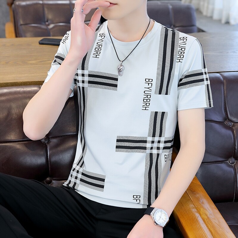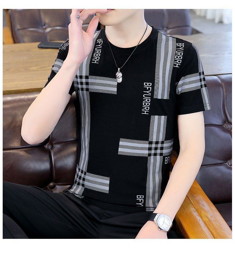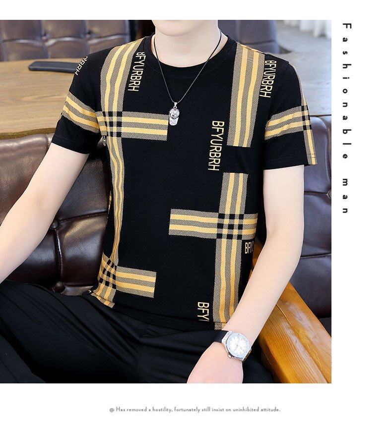 국경 간 대외 무역 AliExpress 남성 여름 [신규] 여름 캐주얼 패션 티셔츠 남성용 반팔 바닥 셔츠스토어 가기