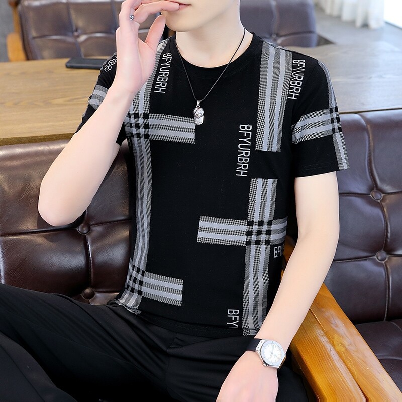 국경 간 대외 무역 AliExpress 남성 여름 [신규] 여름 캐주얼 패션 티셔츠 남성용 반팔 바닥 셔츠