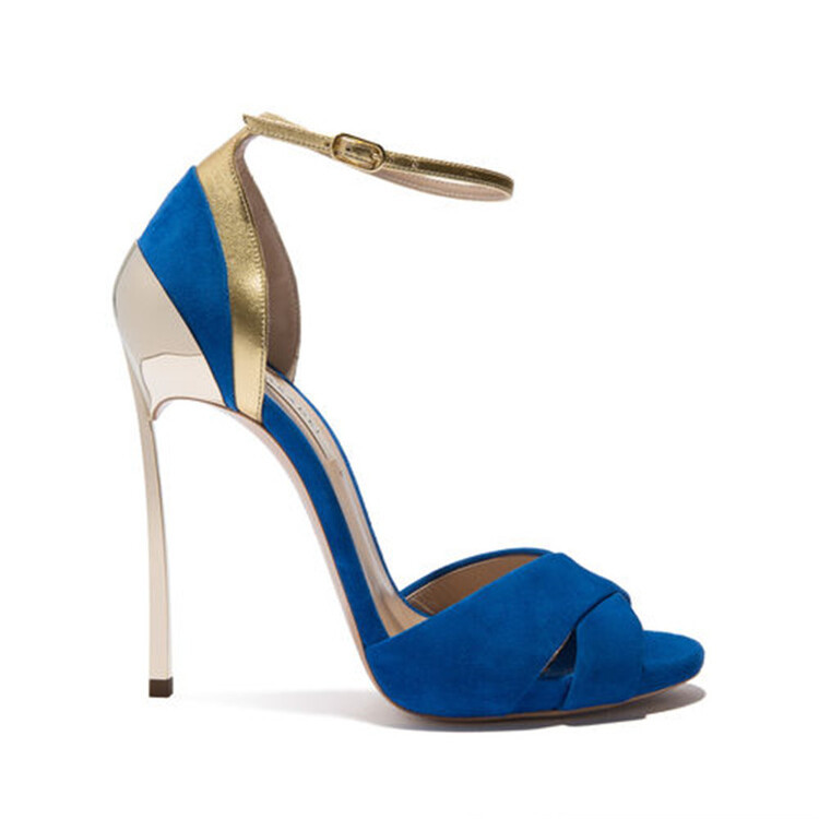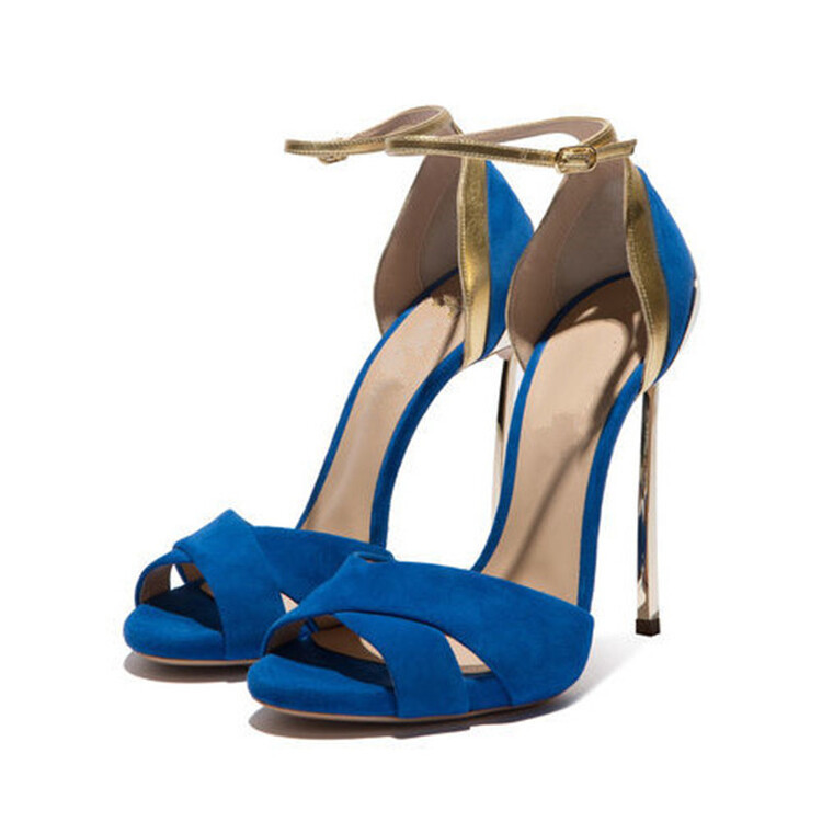 2023 유럽과 미국의 하이힐 패션 샌들 봄과 여름 로마 컬러와 일치하는 새로운 블루 비 재생 라운드 헤드 주문