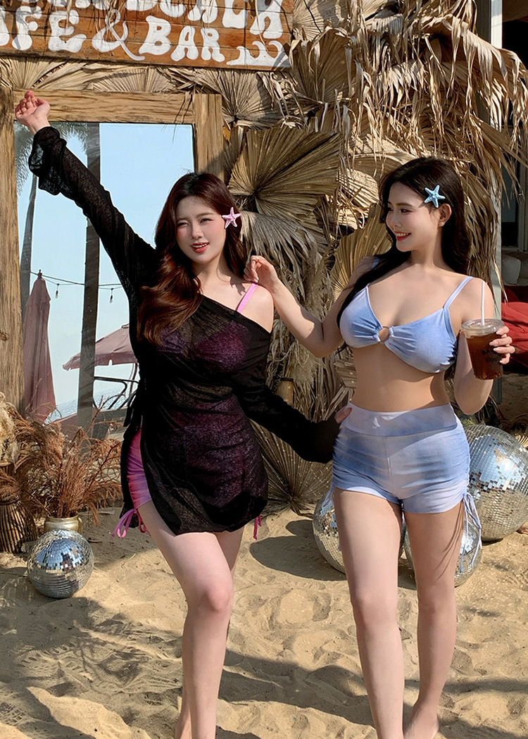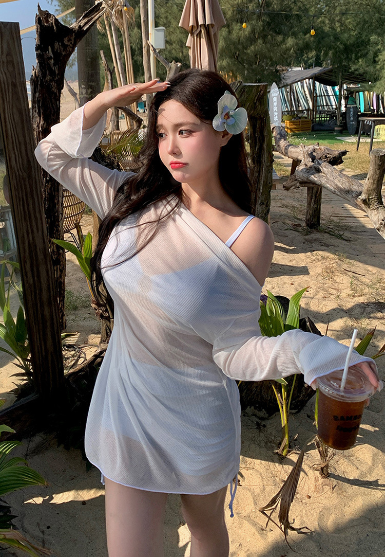수영복 여성의 섹시한 비키니 지방 mm200 kg 슬림 하이 허리 스플릿 3 피스 블라우스 긴 소매 온천 휴가스토어 가기