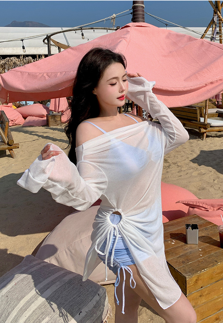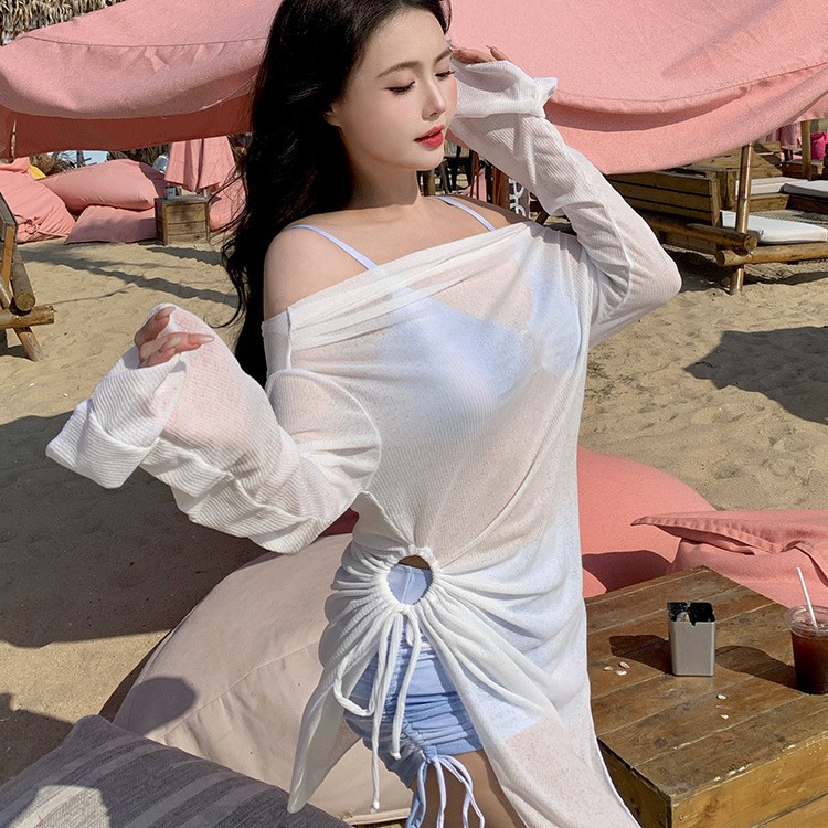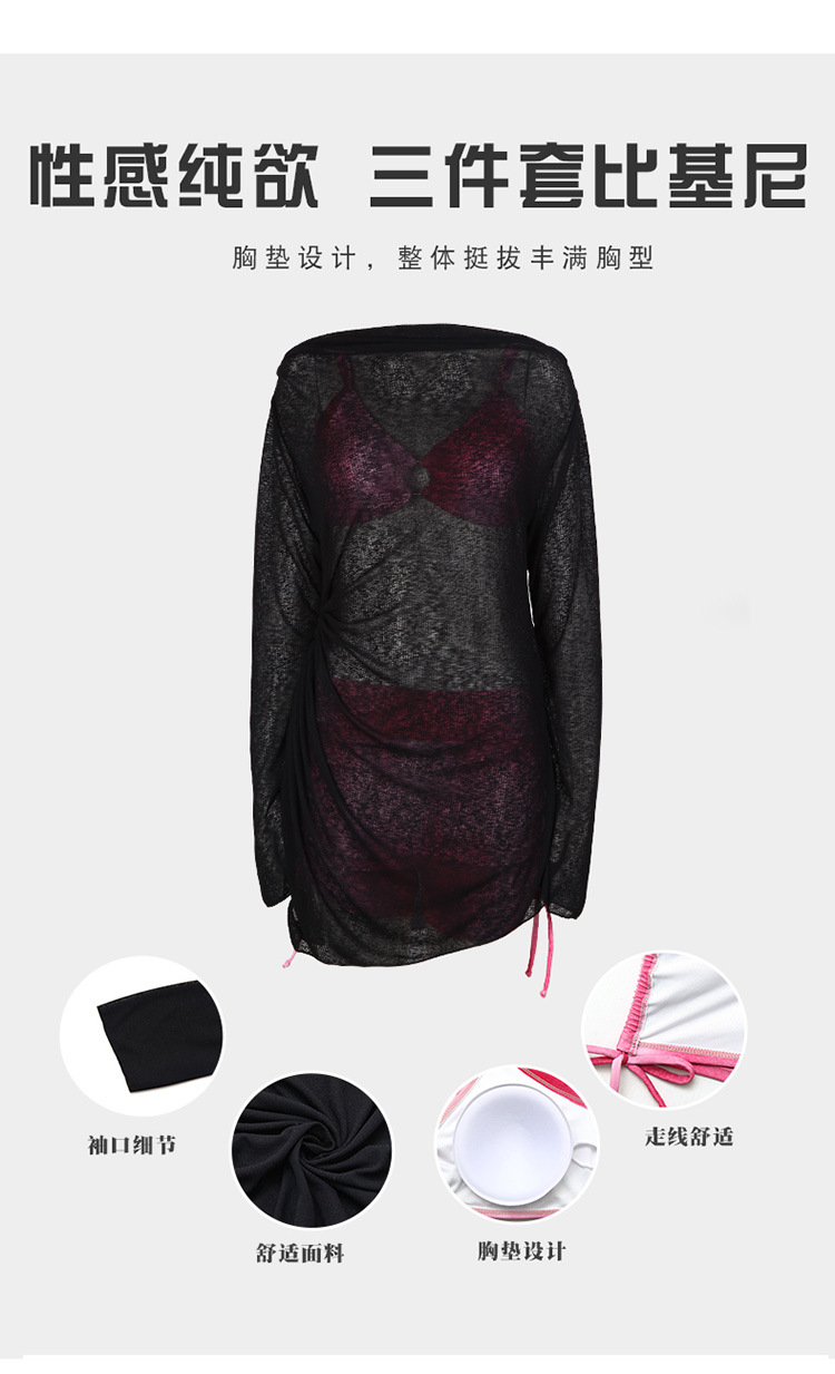 수영복 여성의 섹시한 비키니 지방 mm200 kg 슬림 하이 허리 스플릿 3 피스 블라우스 긴 소매 온천 휴가