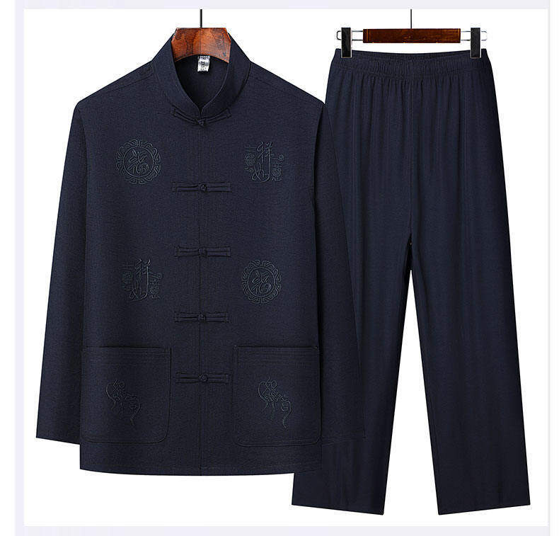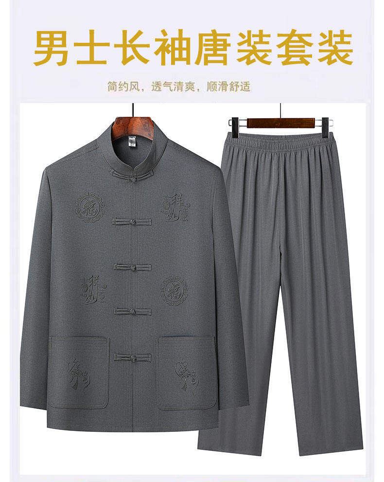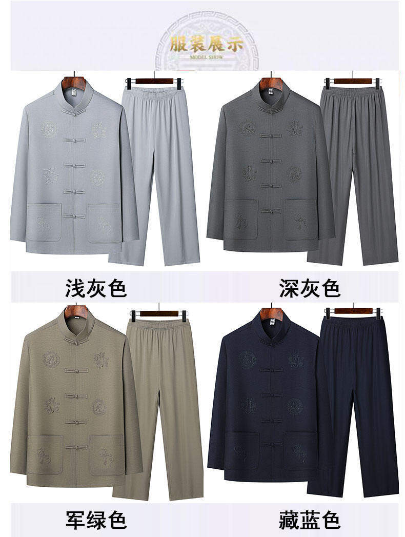 남자 탕 세트 2025 세트 봄과 가을 새로운 남성 중년 및 노인 캐주얼 중국 스타일 아빠 긴 소매 탕 세트스토어 가기