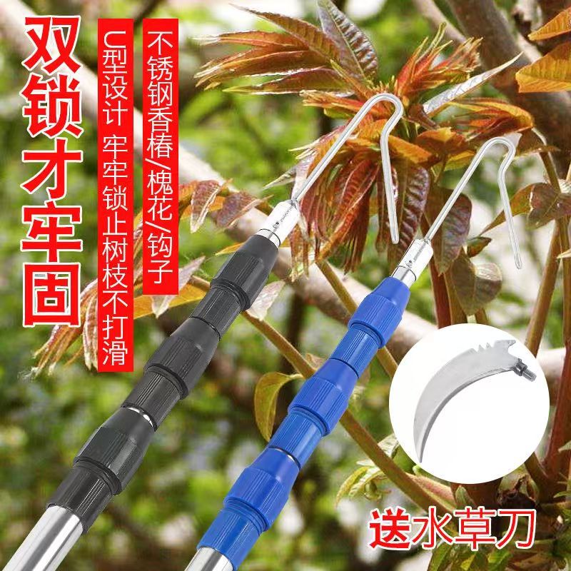 Toona sinensis 후크 텔레스코픽 롱로드 따기 Toona sinensis 따기 Sophora japonica 무료 포지셔닝 두꺼운 스테인레스 스틸 텔레스코픽 막대 따기 Toona sinensis artifact