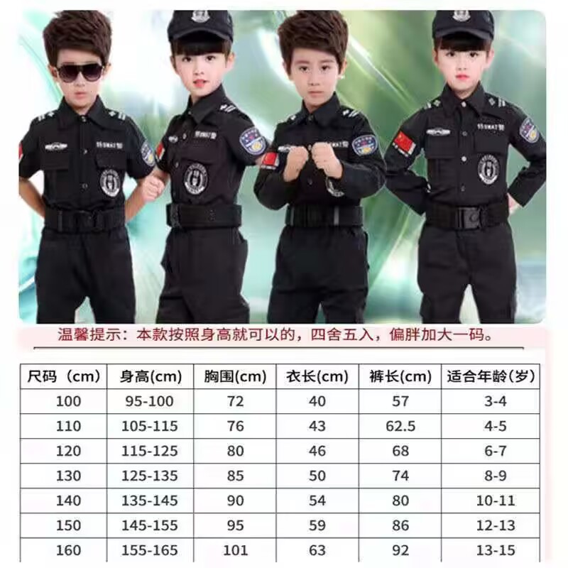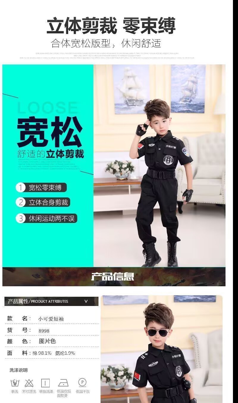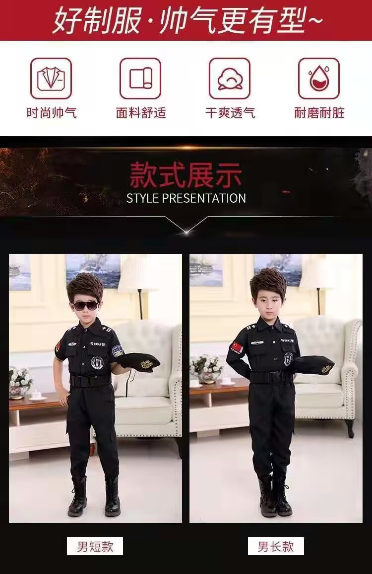 어린이 특수경찰 교복 세트 제복 소년 · 여아 경찰 경사 특수부대 어린이 공연 유니폼 군복 공연 유니폼