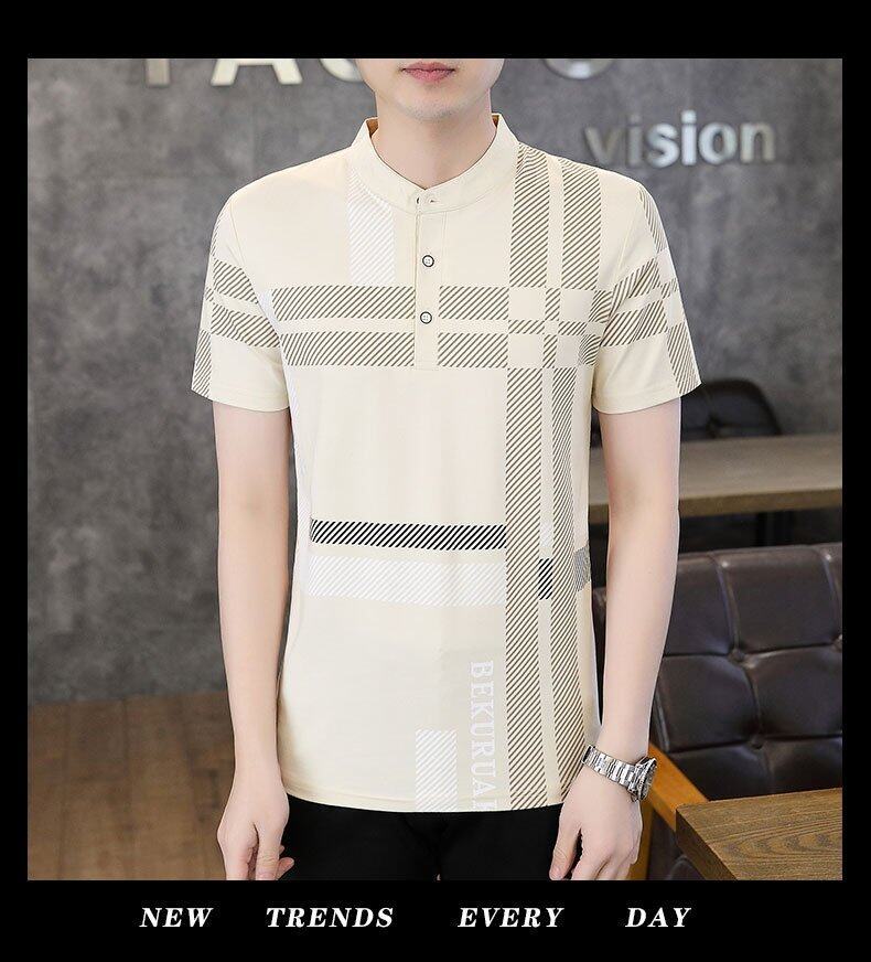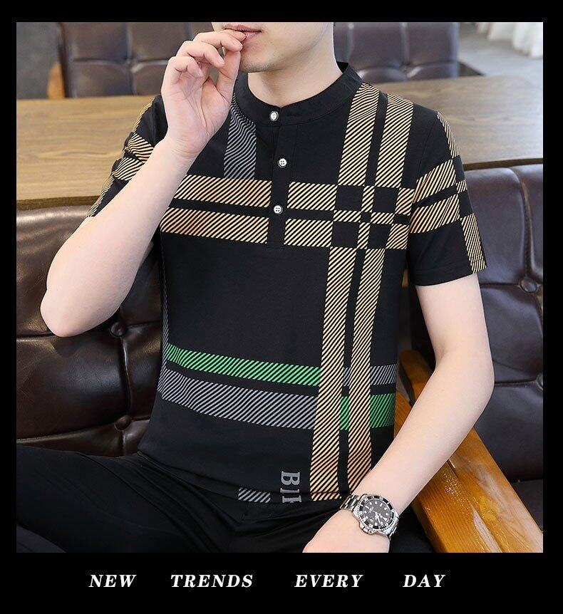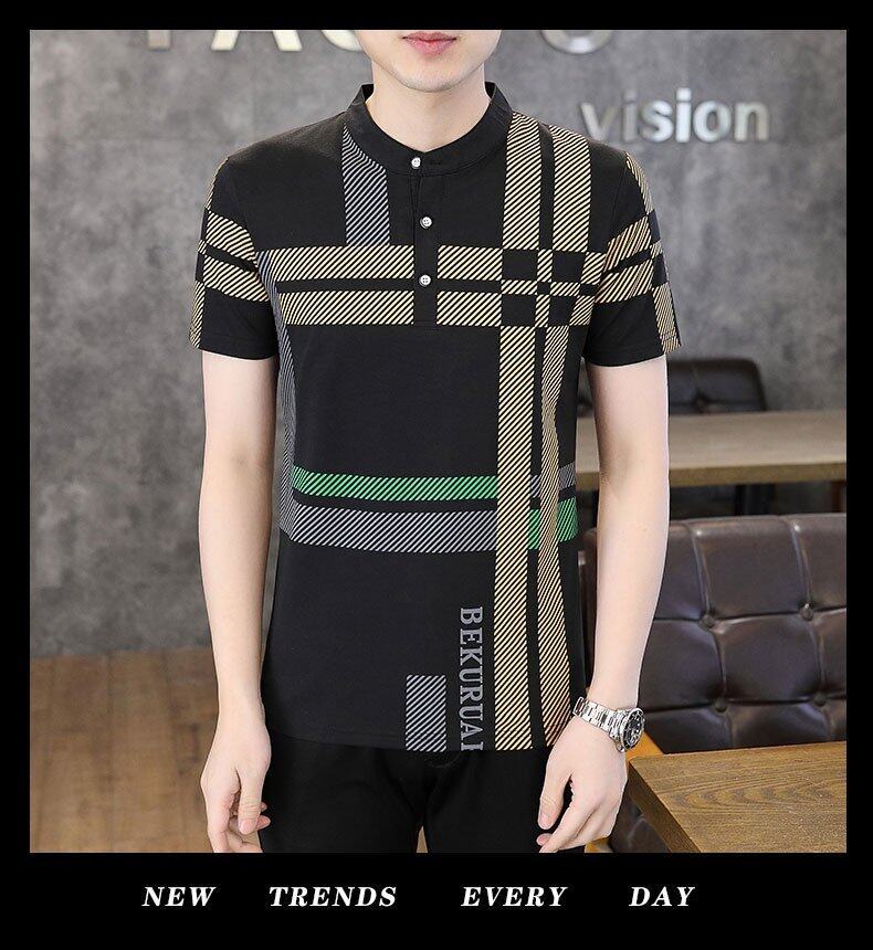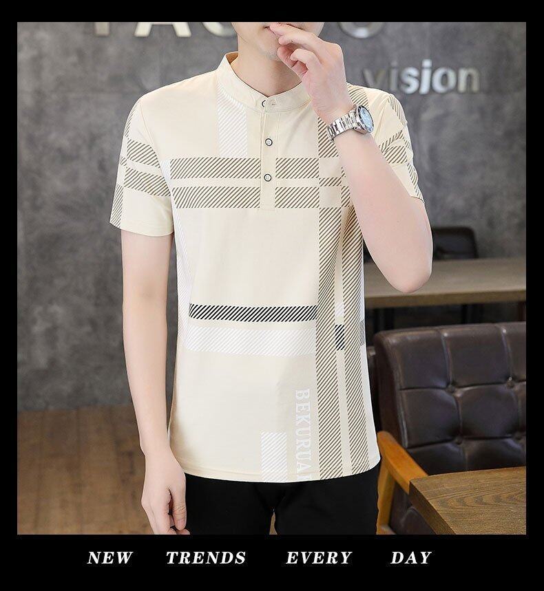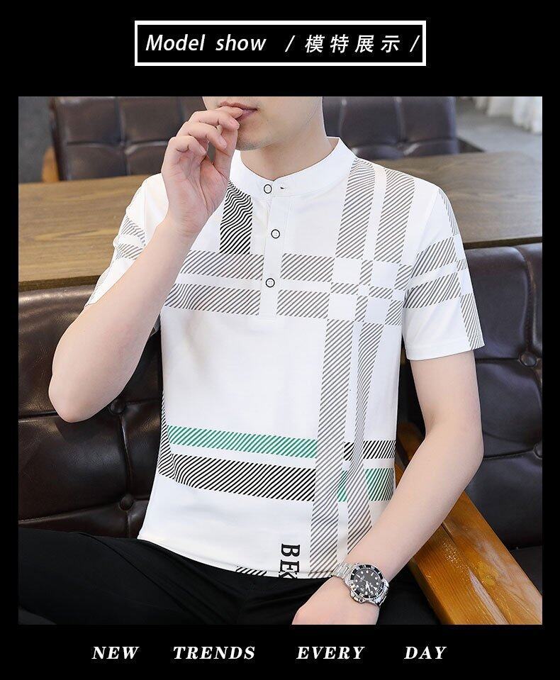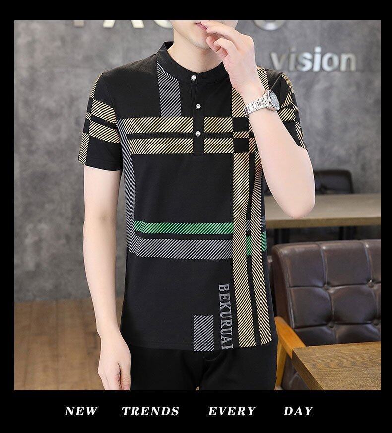 국경 간 대외 무역 AliExpress 남성 여름 [신규] 여름 캐주얼 패션 티셔츠 남성용 반팔 바닥 셔츠스토어 가기