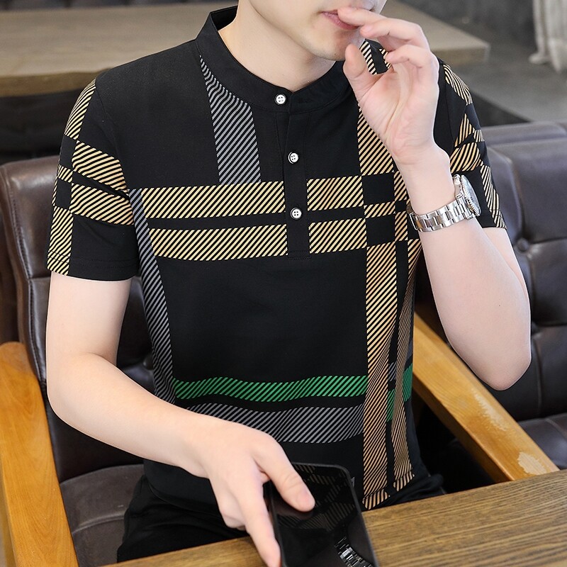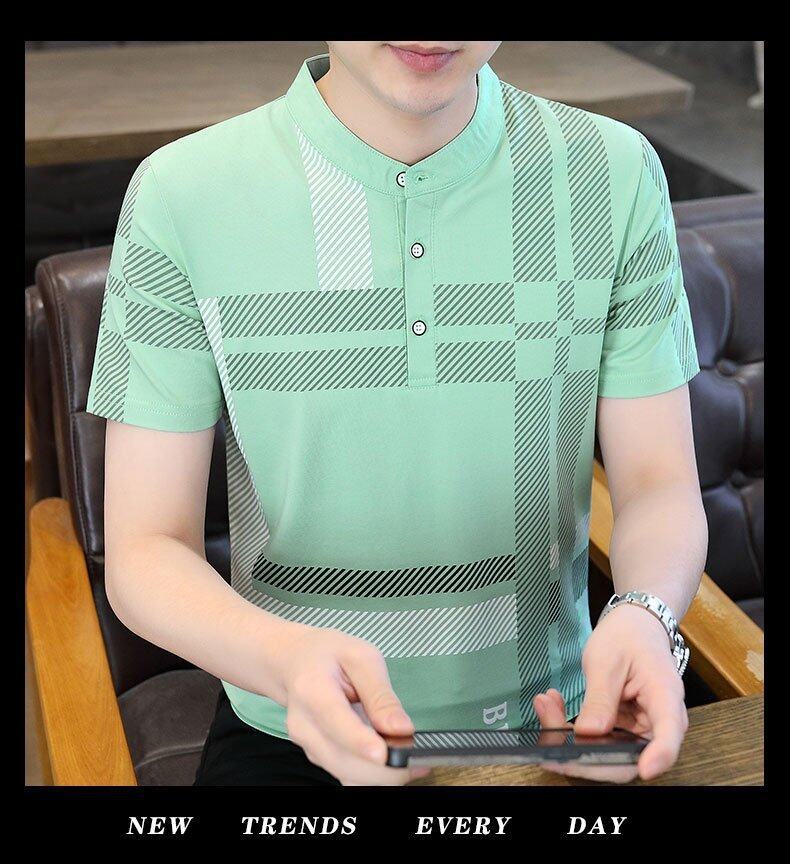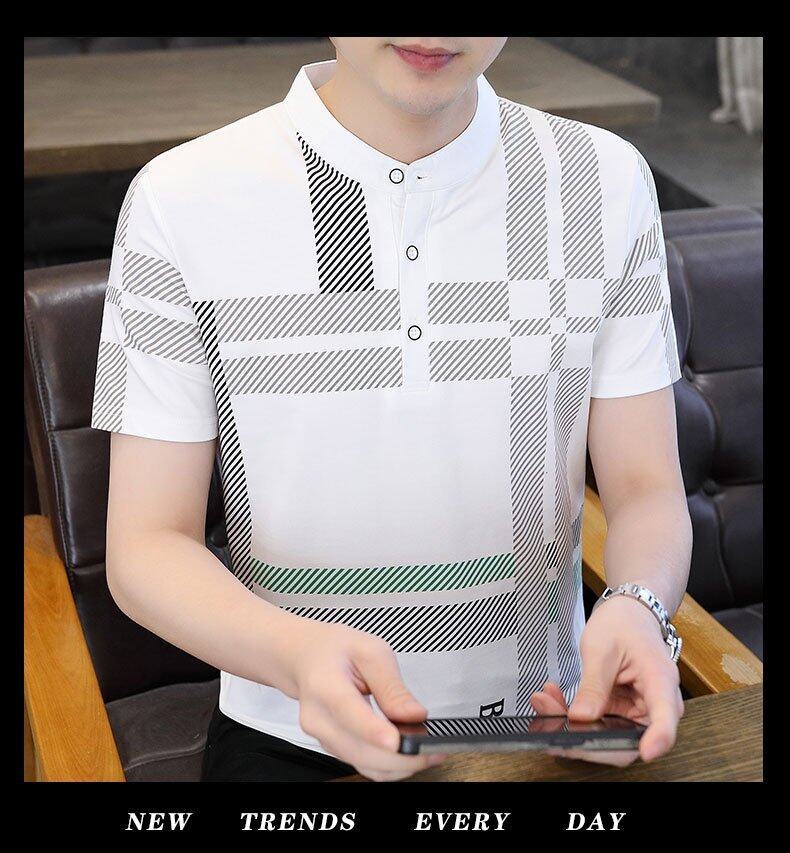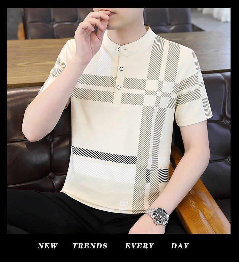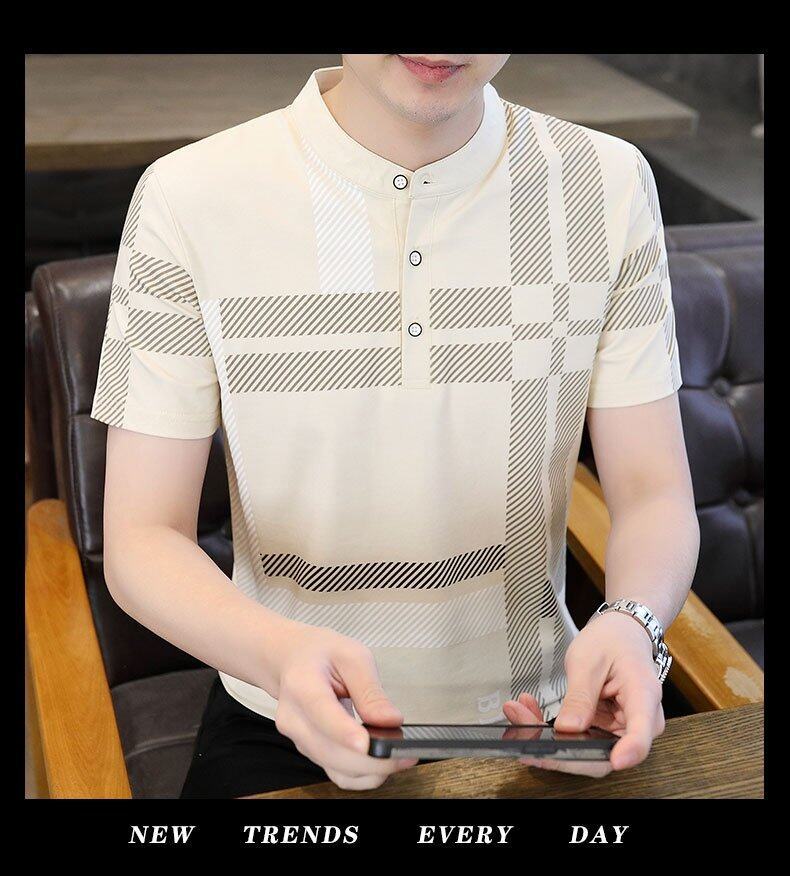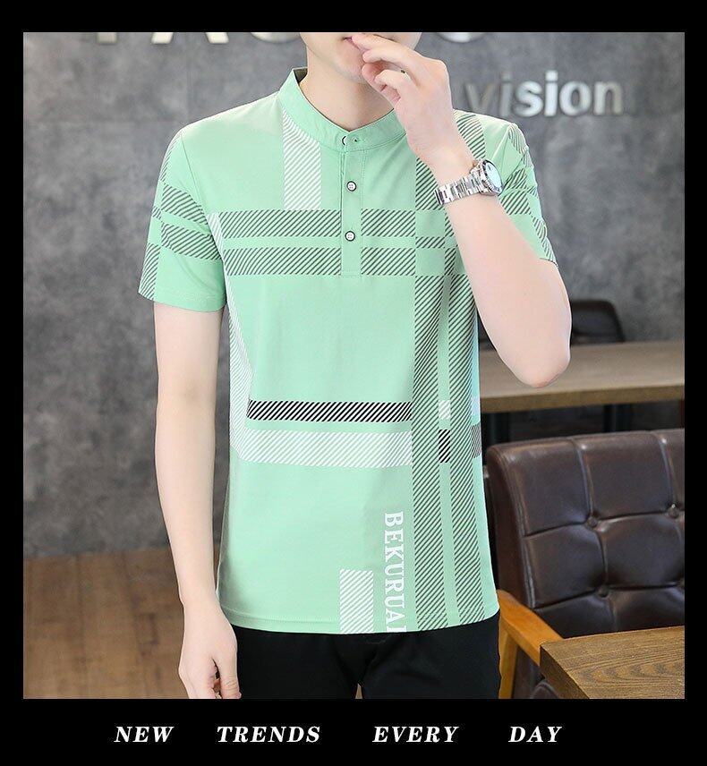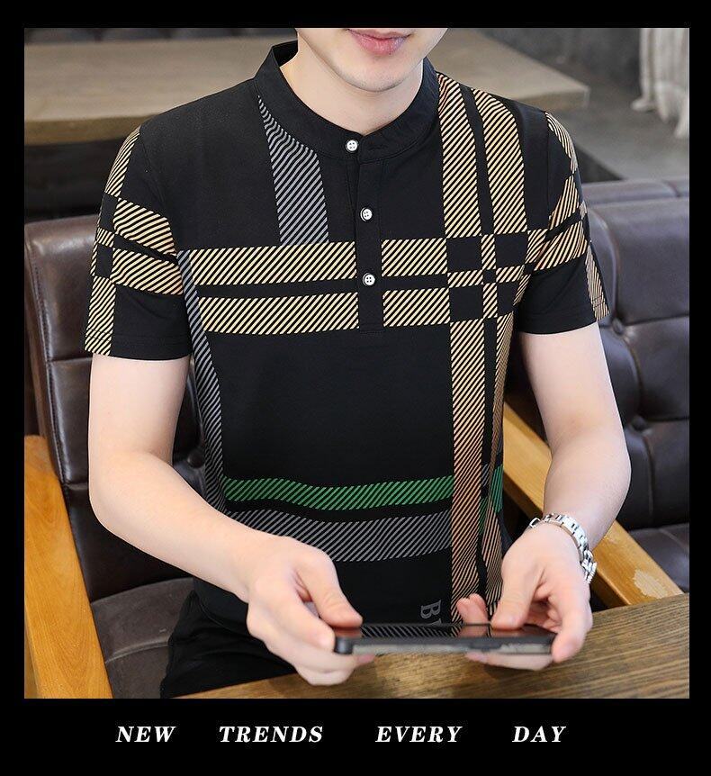 국경 간 대외 무역 AliExpress 남성 여름 [신규] 여름 캐주얼 패션 티셔츠 남성용 반팔 바닥 셔츠스토어 가기