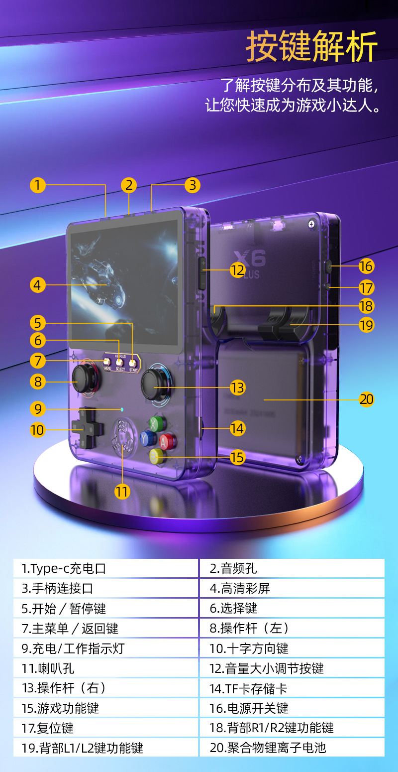 새로운 X6PLUS 휴대용 게임 콘솔 3D 듀얼 조이스틱 아케이드 4inch 고화질 대형 화면 휴대용 게임 콘솔 PSP 고화질 화면