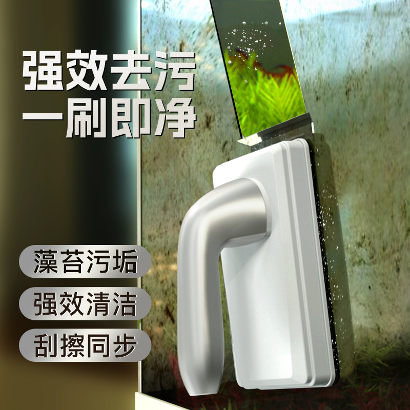 물고기 탱크 브러시 내부 벽 청소 강한 자기 유리 청소 유물 물고기 탱크 닦아 긴 손잡이 청소 도구 자석 브러시