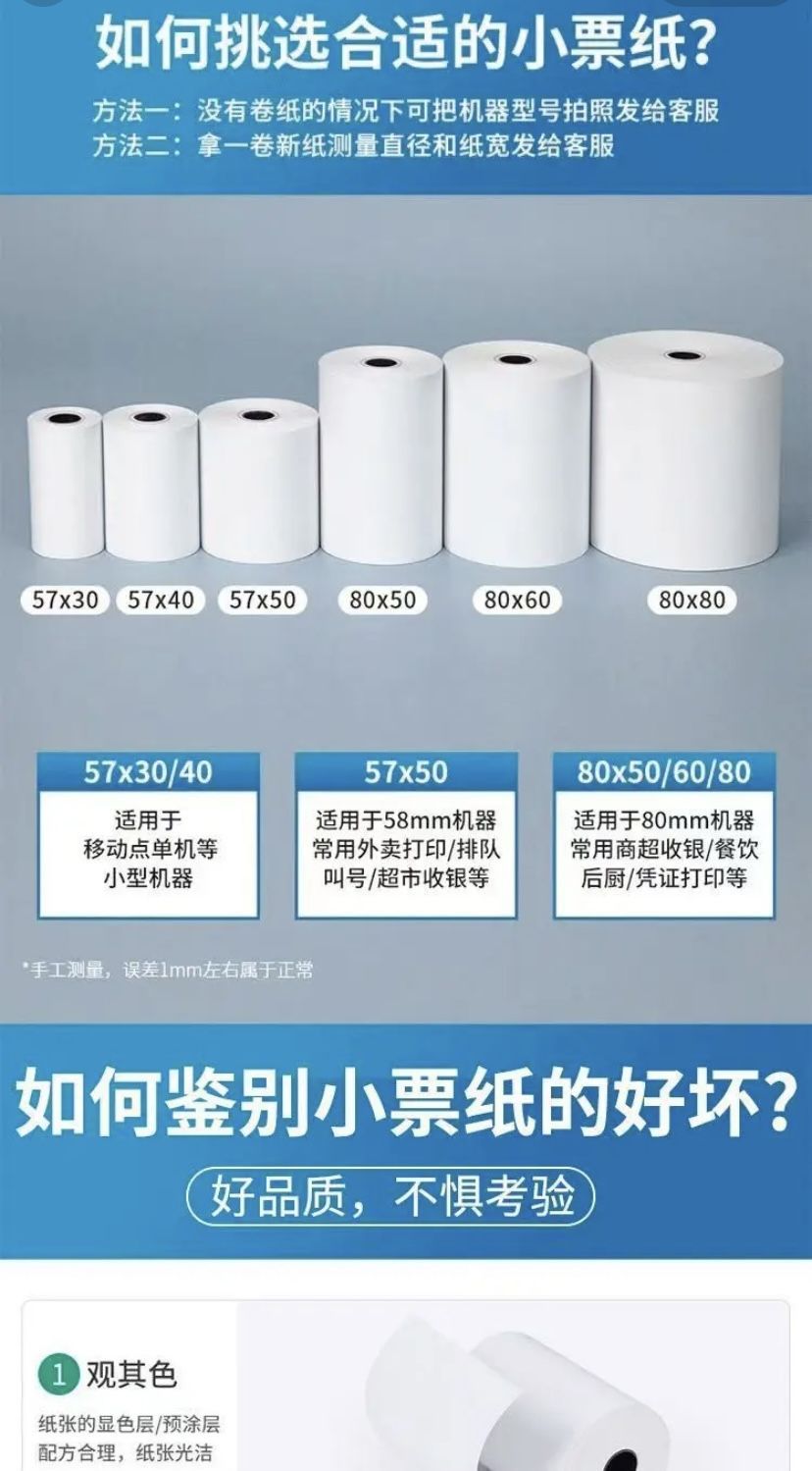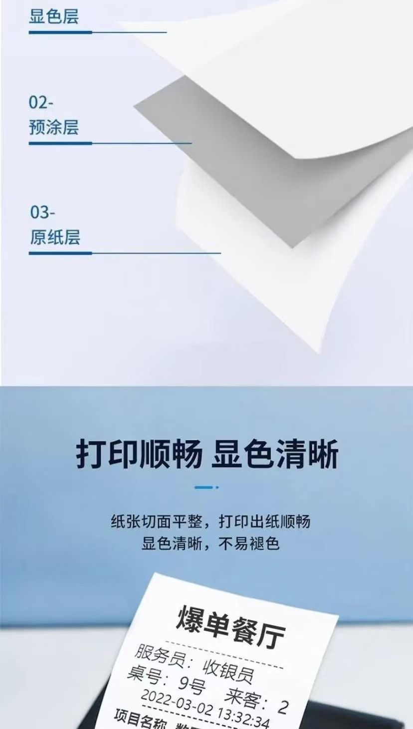 테이크 아웃 금전 등록기 종이 주방 580mm750 종이 코리스 종이 영수증 슈퍼마켓 일반 테이크 아웃 영수증 인쇄 열