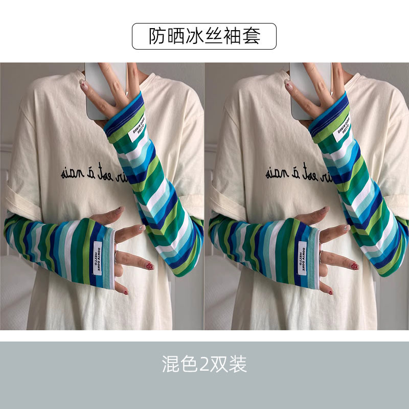 새로운 아이스 슬리브 여름 슬리브 선스크린 슬리브 자외선 방지 여성용 야외 승마 암 프로텍터 올 매치 스트라이프 얇은 소매