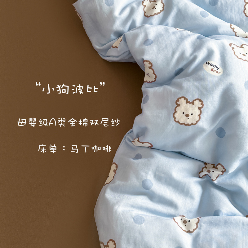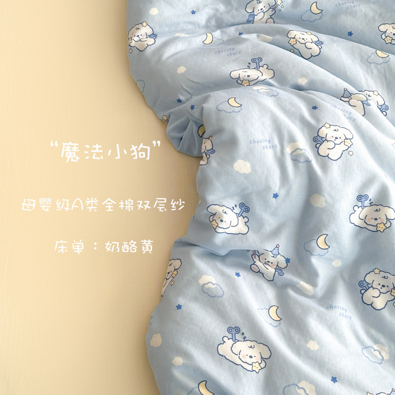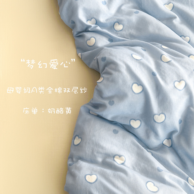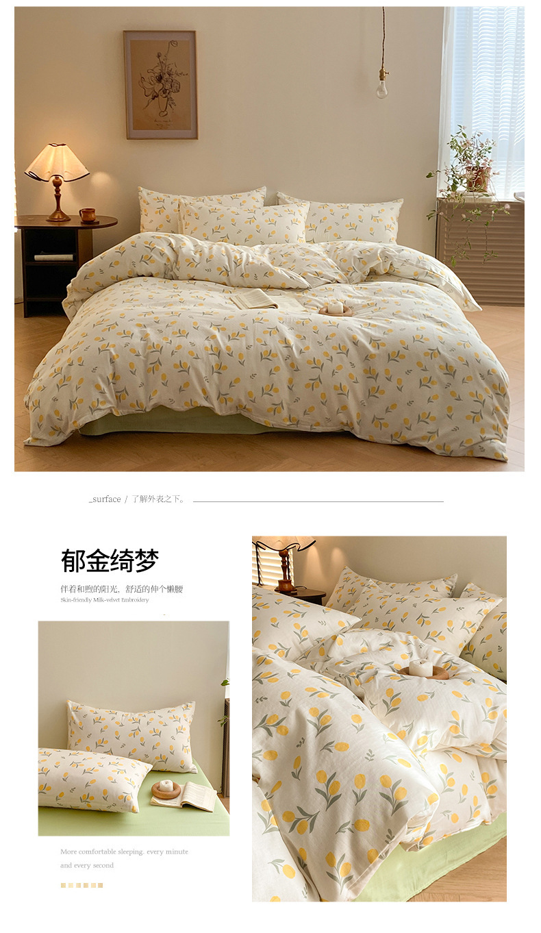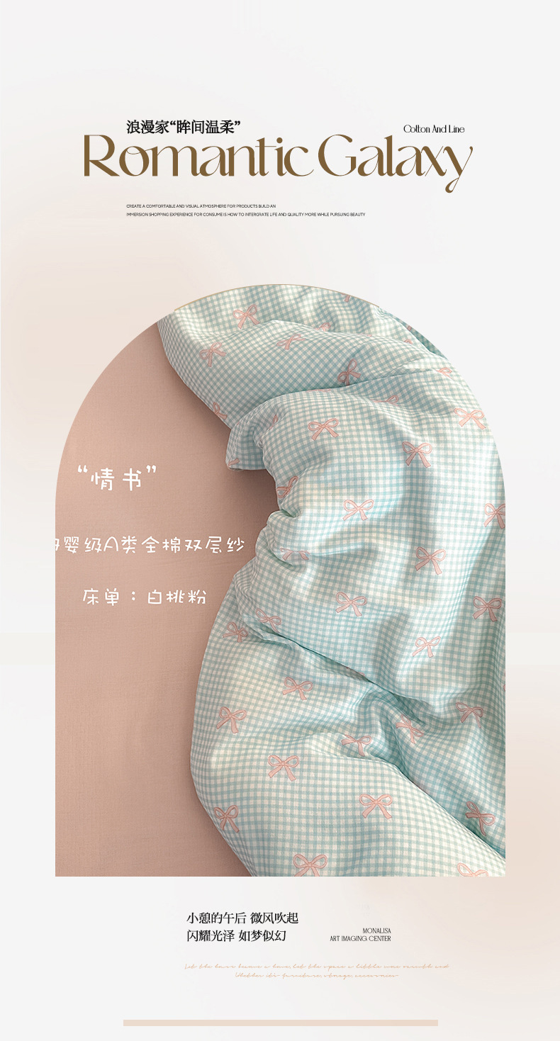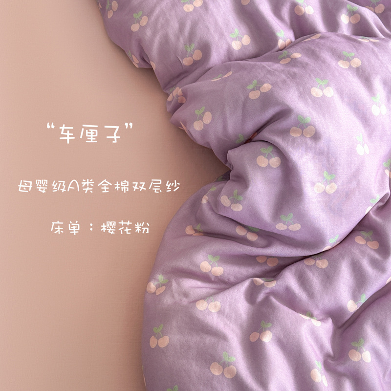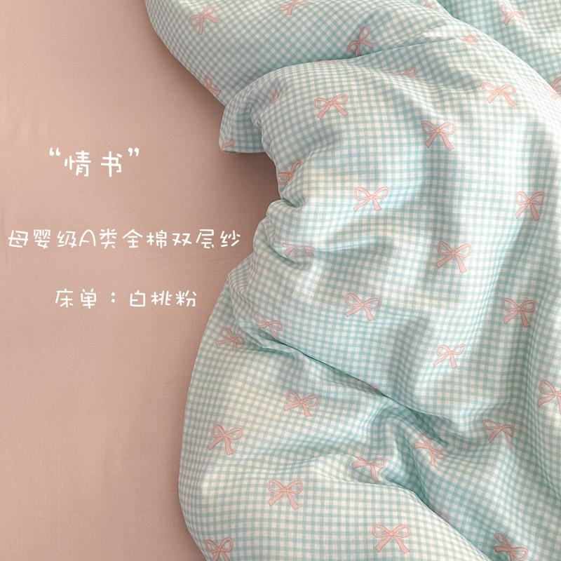 순수 코튼 클래스 모성 및 유아 등급 에어로빅 더블 레이어 원사 순수 코튼 4 피스 세트 봄과 여름 피부 친화적 인 Ins 작은 신선한 인쇄 3 피스 세트스토어 가기