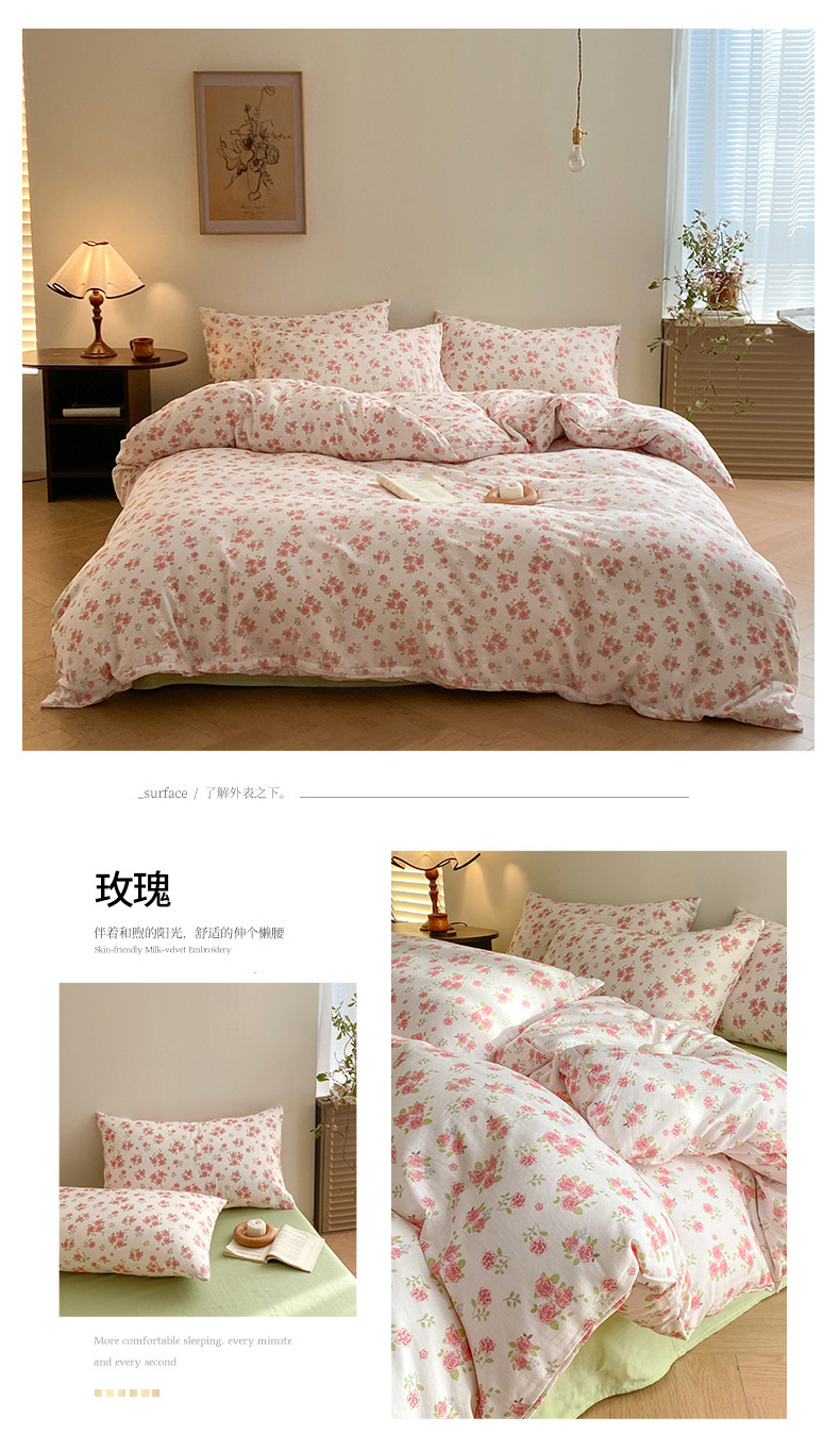 순수 코튼 클래스 모성 및 유아 등급 에어로빅 더블 레이어 원사 순수 코튼 4 피스 세트 봄과 여름 피부 친화적 인 Ins 작은 신선한 인쇄 3 피스 세트