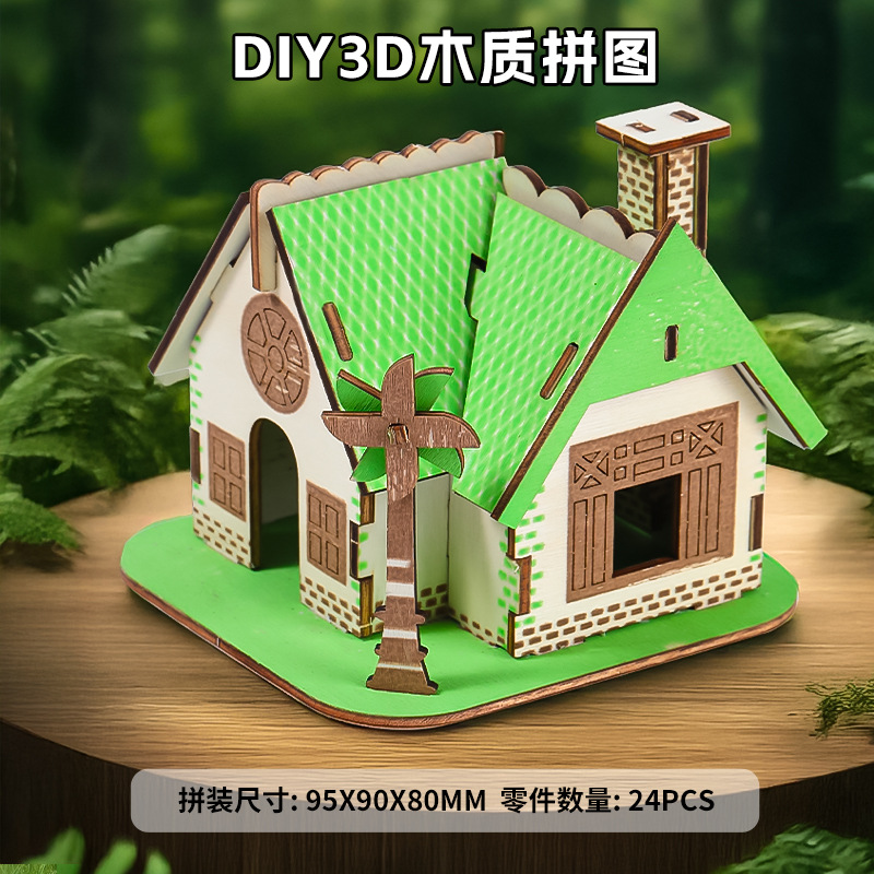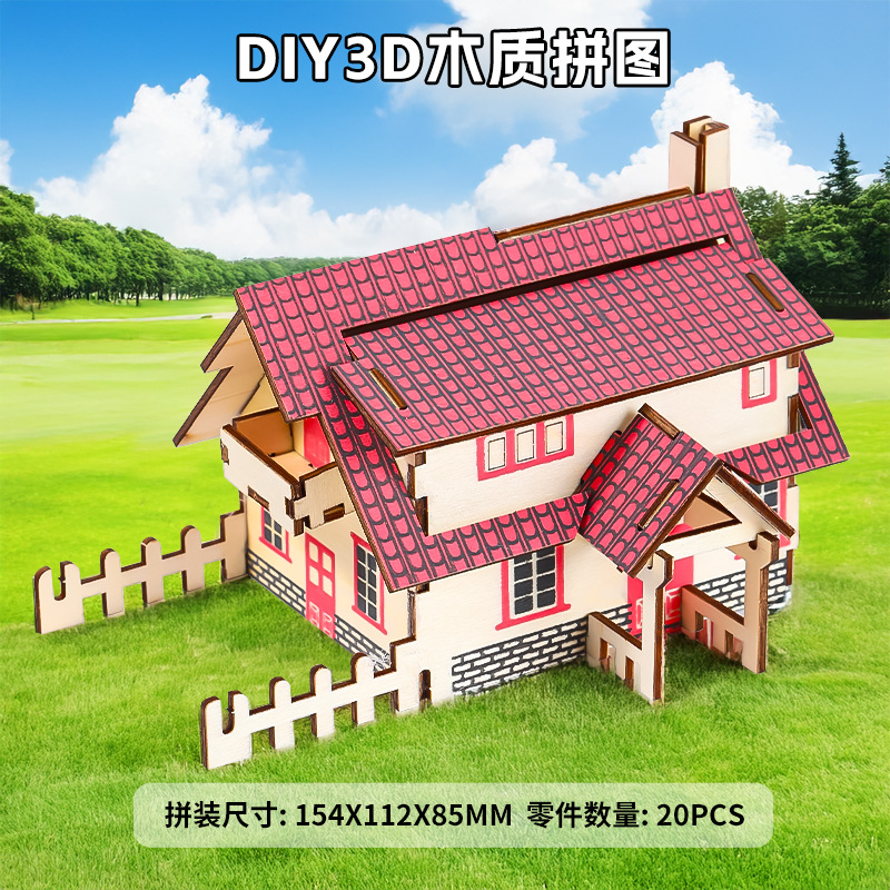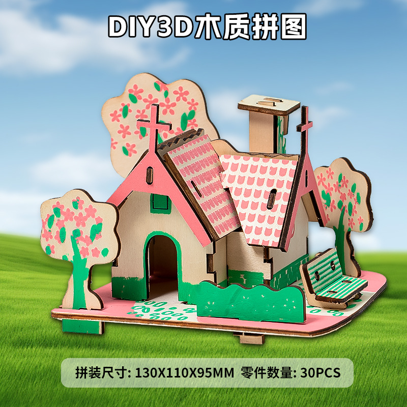 DIY 나무 마구간 수제 핑크 블루 드림 레이저 절단 퍼즐 3d스토어 가기