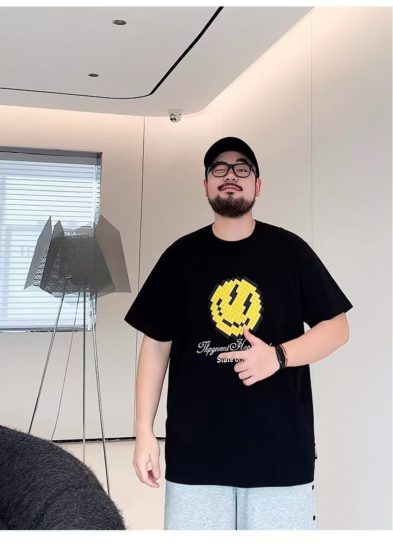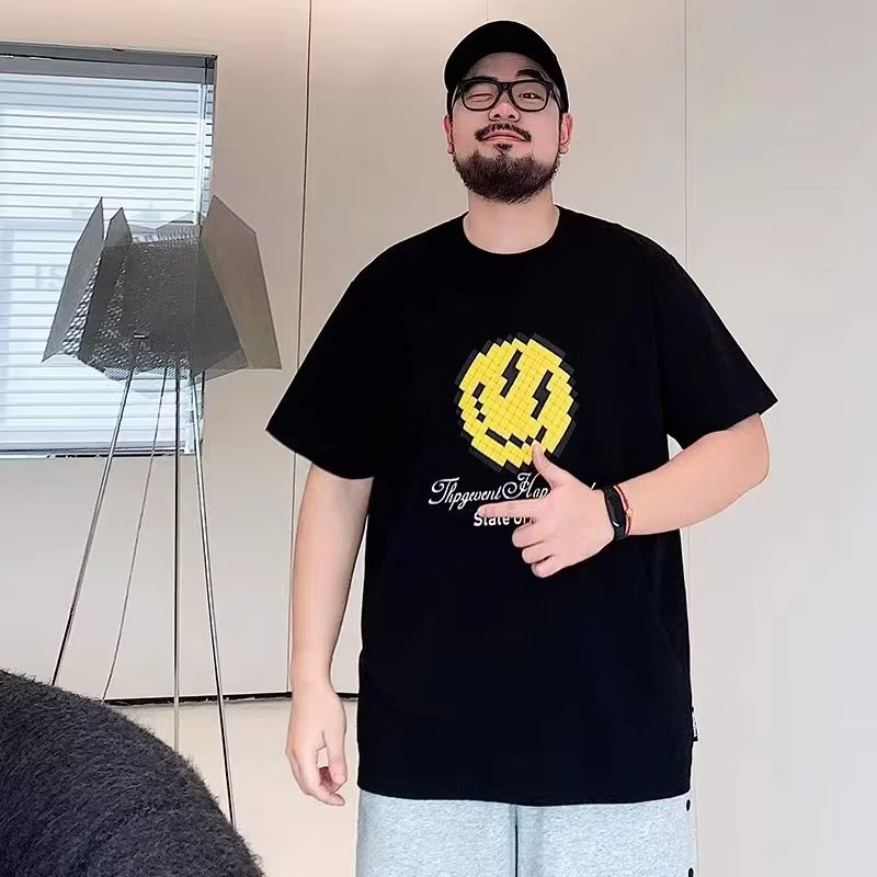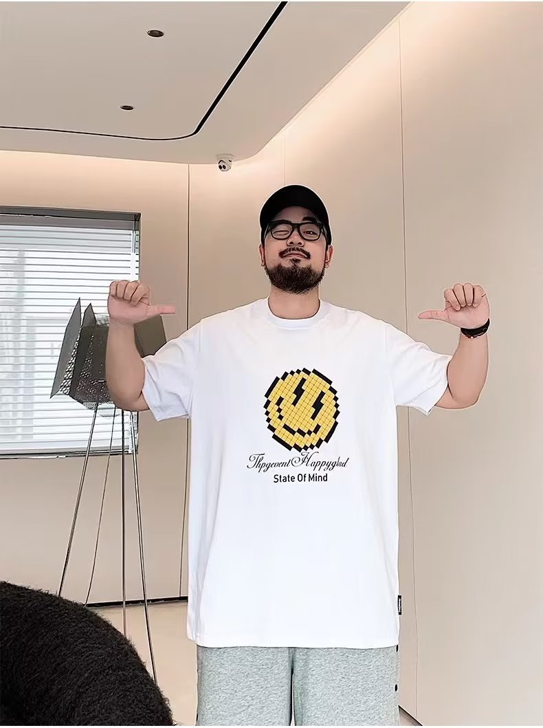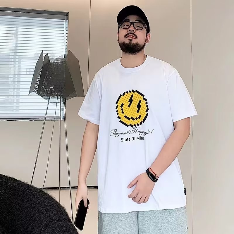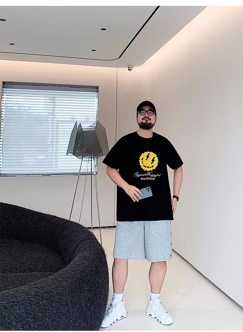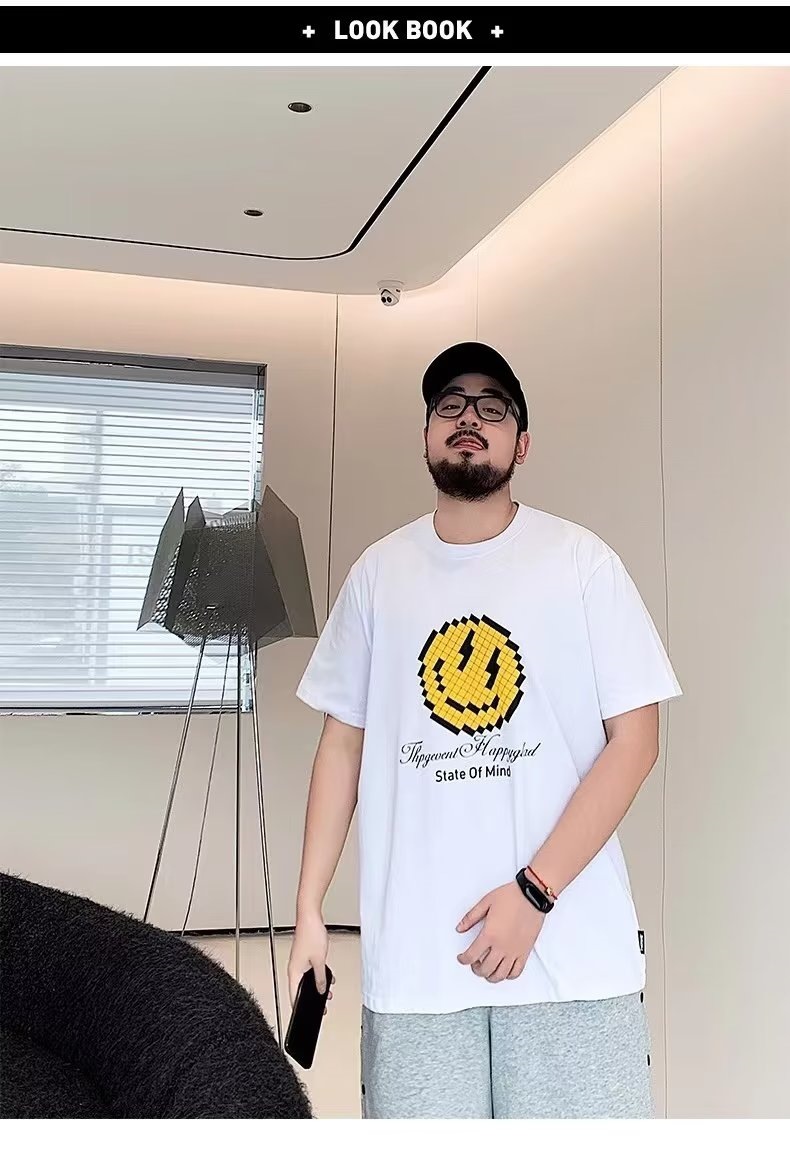 트렌디 한 Instagram 스타일 웃는 편지 인쇄 반팔 티셔츠 여름 유행 브랜드 플러스 사이즈 느슨한 캐주얼 라운드 넥 퓨어 코튼 반팔 남성