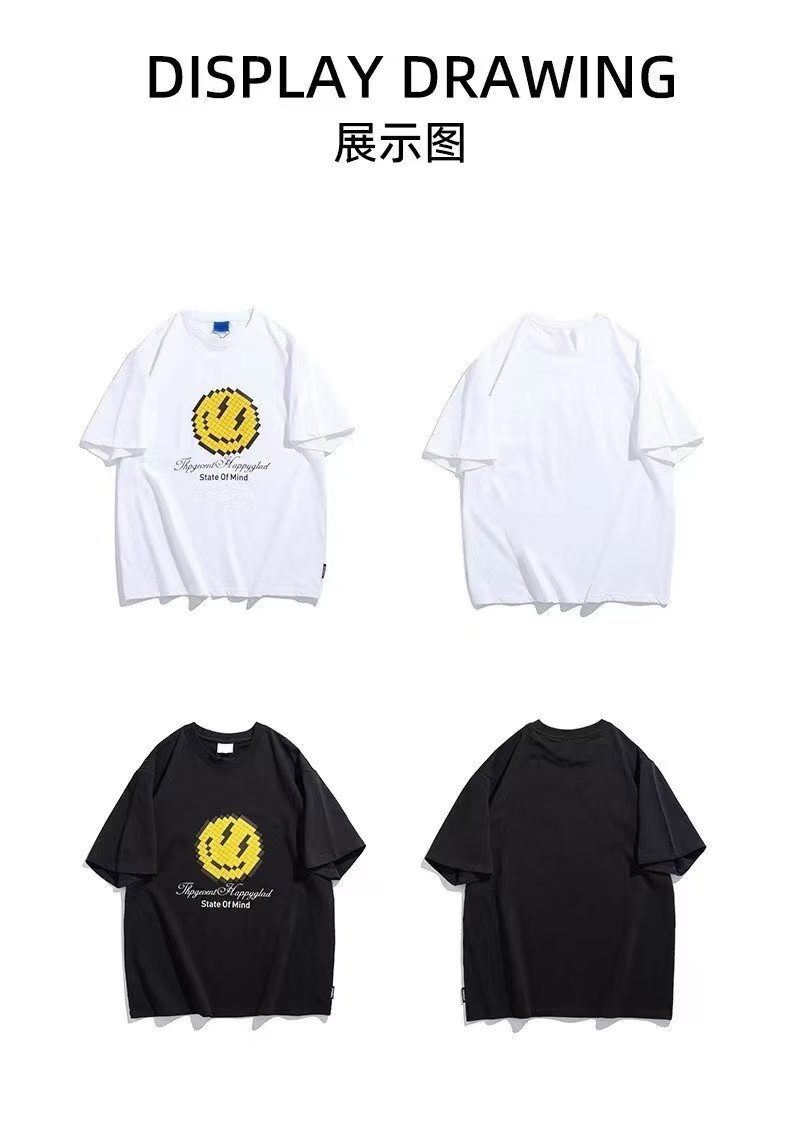 트렌디 한 Instagram 스타일 웃는 편지 인쇄 반팔 티셔츠 여름 유행 브랜드 플러스 사이즈 느슨한 캐주얼 라운드 넥 퓨어 코튼 반팔 남성스토어 가기