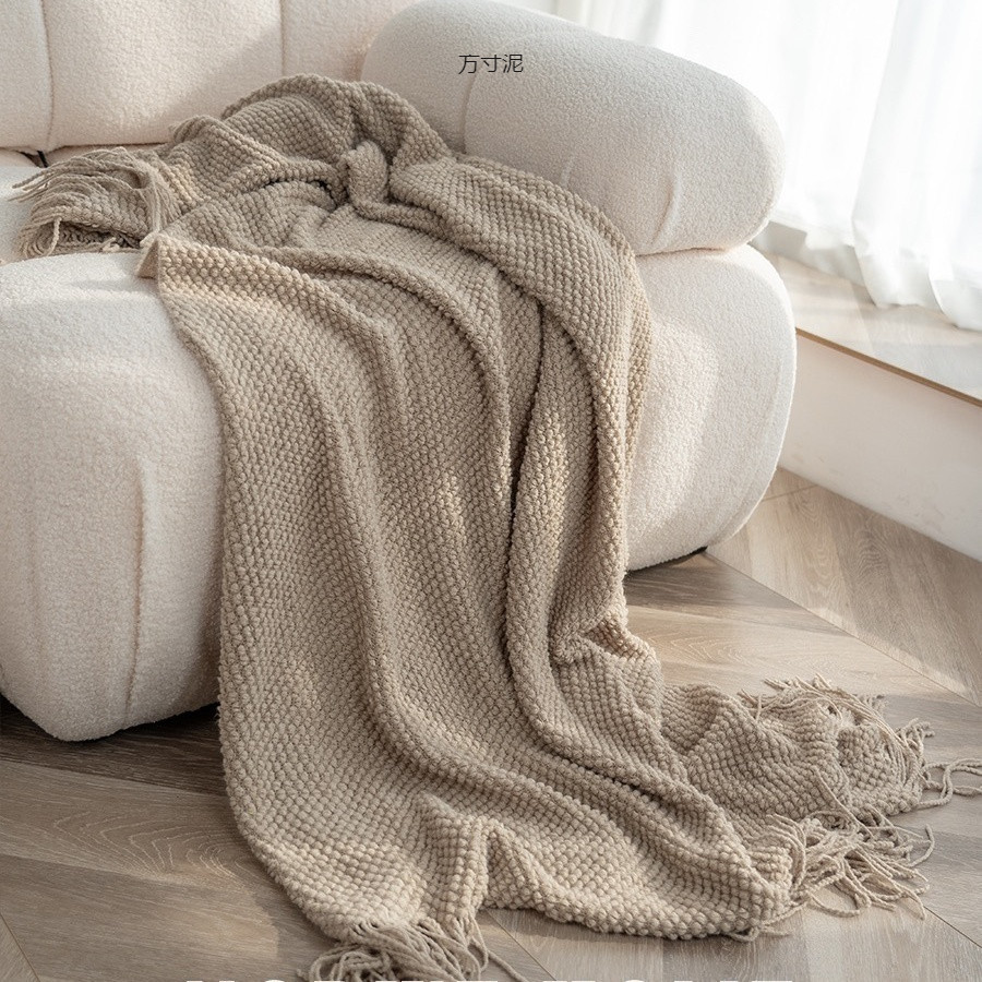 컬러 니트 담요 와비사비 스타일 B&B 침대 옆 장식 담요 침대 타월 인 낮잠 담요 커버 담요 소파 담요 공장