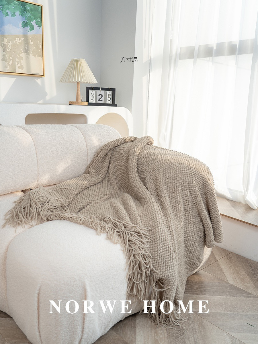 컬러 니트 담요 와비사비 스타일 B&B 침대 옆 장식 담요 침대 타월 인 낮잠 담요 커버 담요 소파 담요 공장스토어 가기