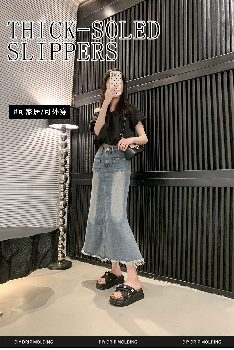 샌들과 슬리퍼 여성 여름 야외 2025 새로운 높이 증가 두꺼운 밑창 비치 샌들 여성 요정 스타일의 패션 플랫 슬리퍼스토어 가기