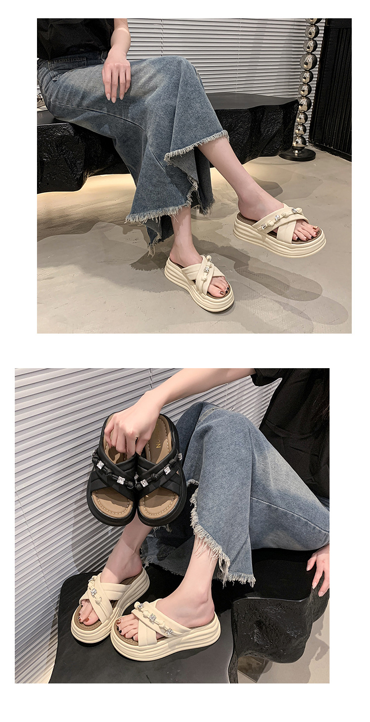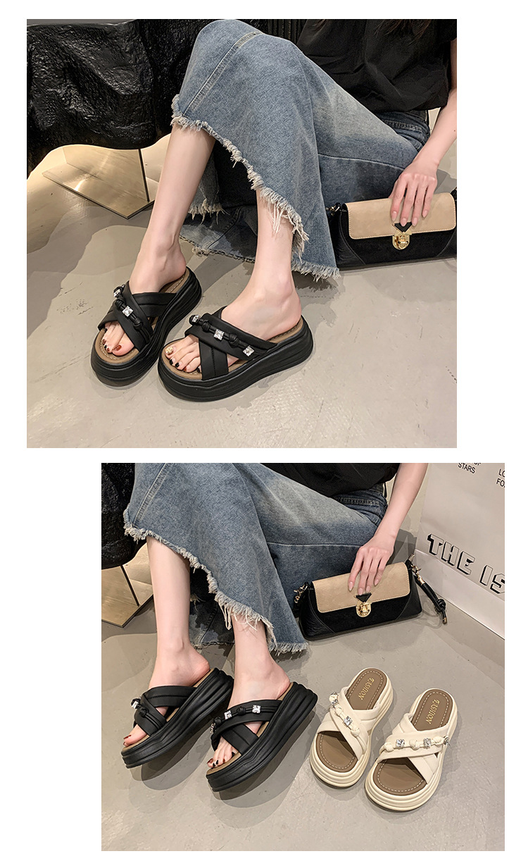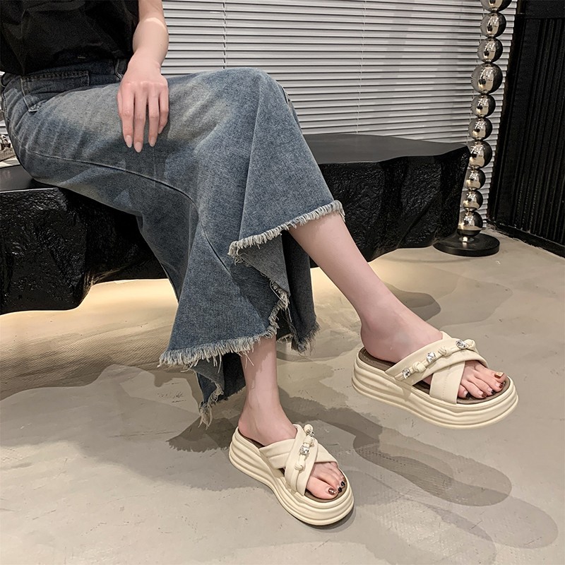 샌들과 슬리퍼 여성 여름 야외 2025 새로운 높이 증가 두꺼운 밑창 비치 샌들 여성 요정 스타일의 패션 플랫 슬리퍼