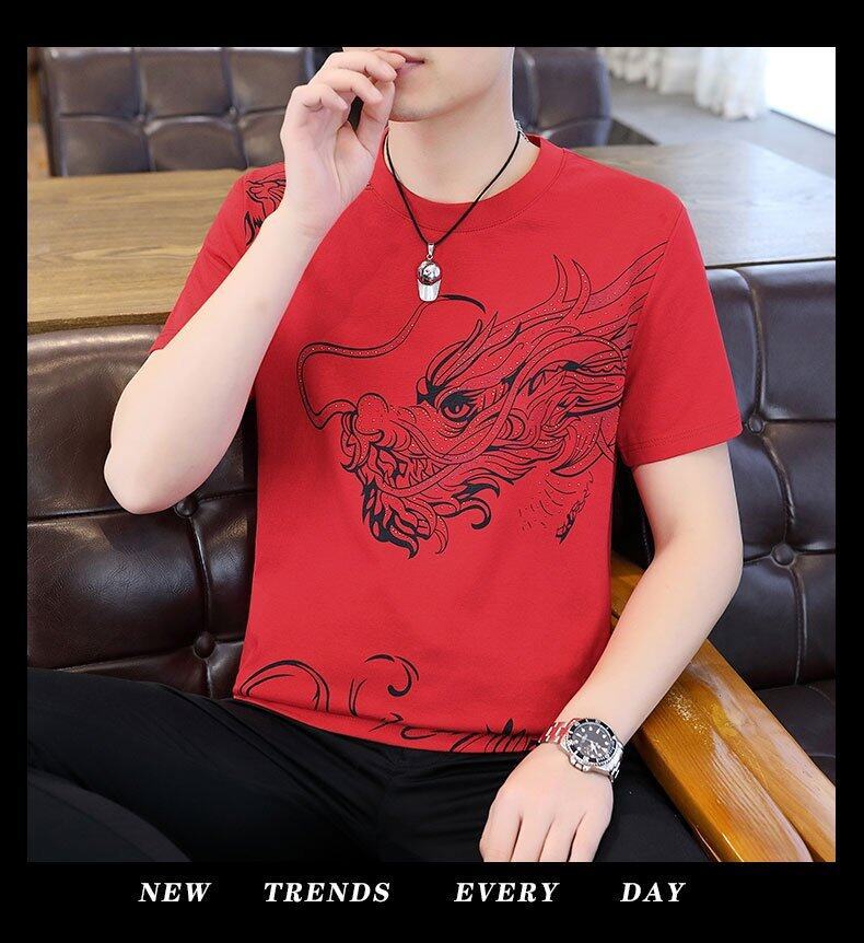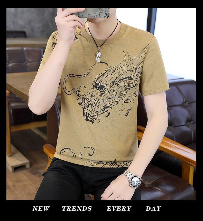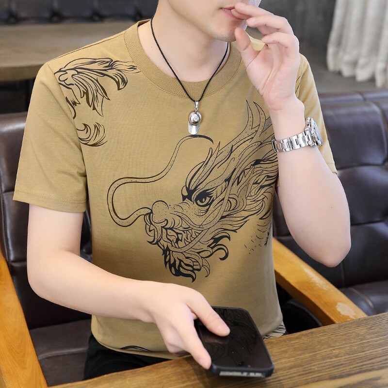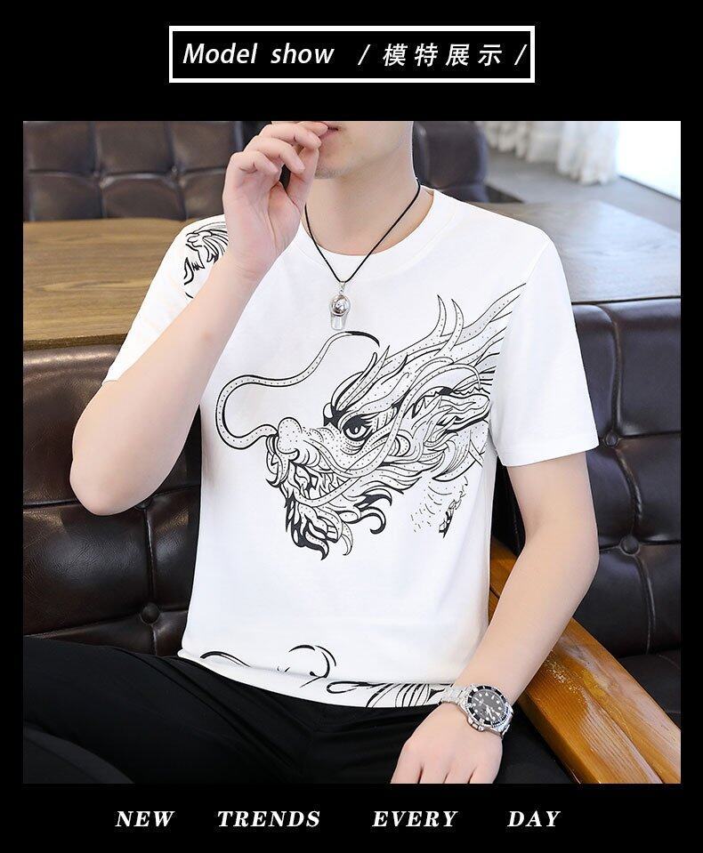 국경 간 대외 무역 AliExpress 남성 여름 [신규] 여름 캐주얼 패션 티셔츠 남성용 반팔 바닥 셔츠스토어 가기