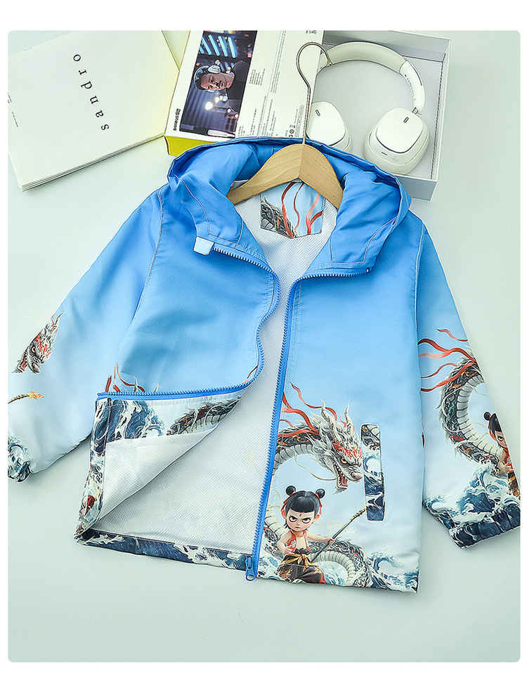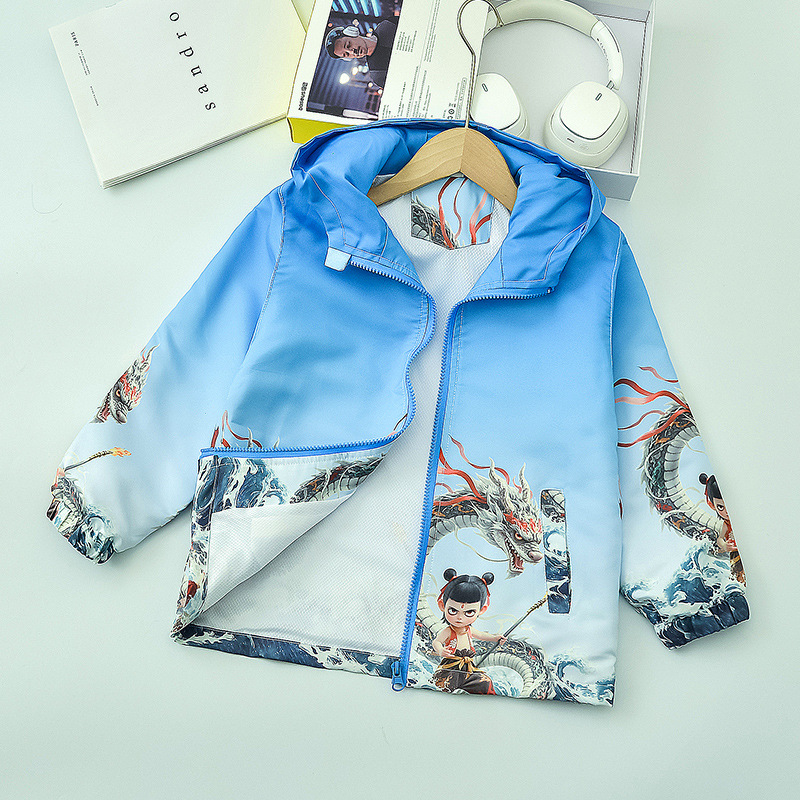 Nezha Boys의 만화 코트 2025 새로운 어린이 봄 옷 충전 옷 어린 소년의 봄 카디건 재킷 코트스토어 가기