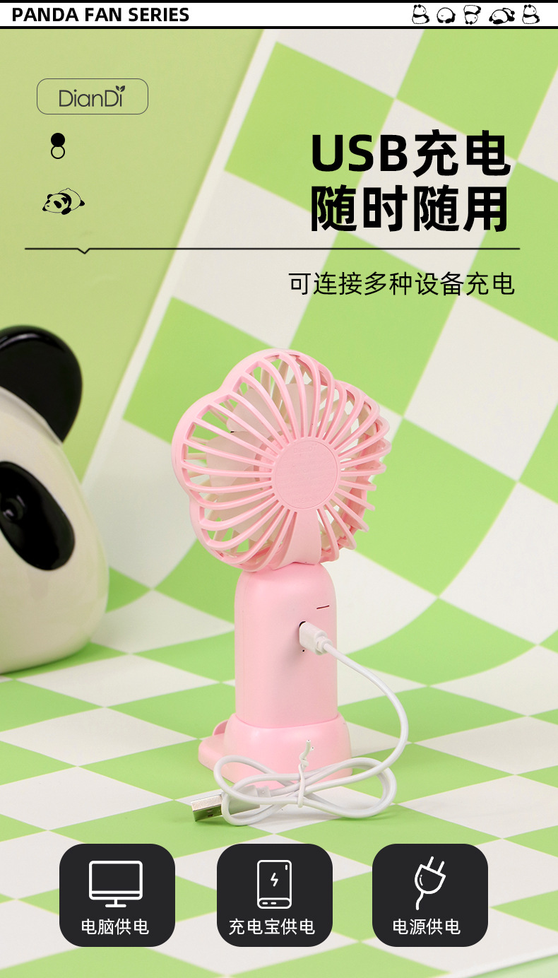 작은 신선한 간단한 꽃 휴대용 작은 팬 USB 충전 미니 팬 휴대용 대형 바람 데스크탑 팬