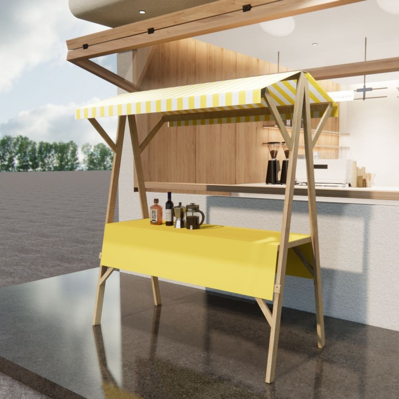 • 노란색과 흰색 줄무늬 타포린 + 노란색 식탁보