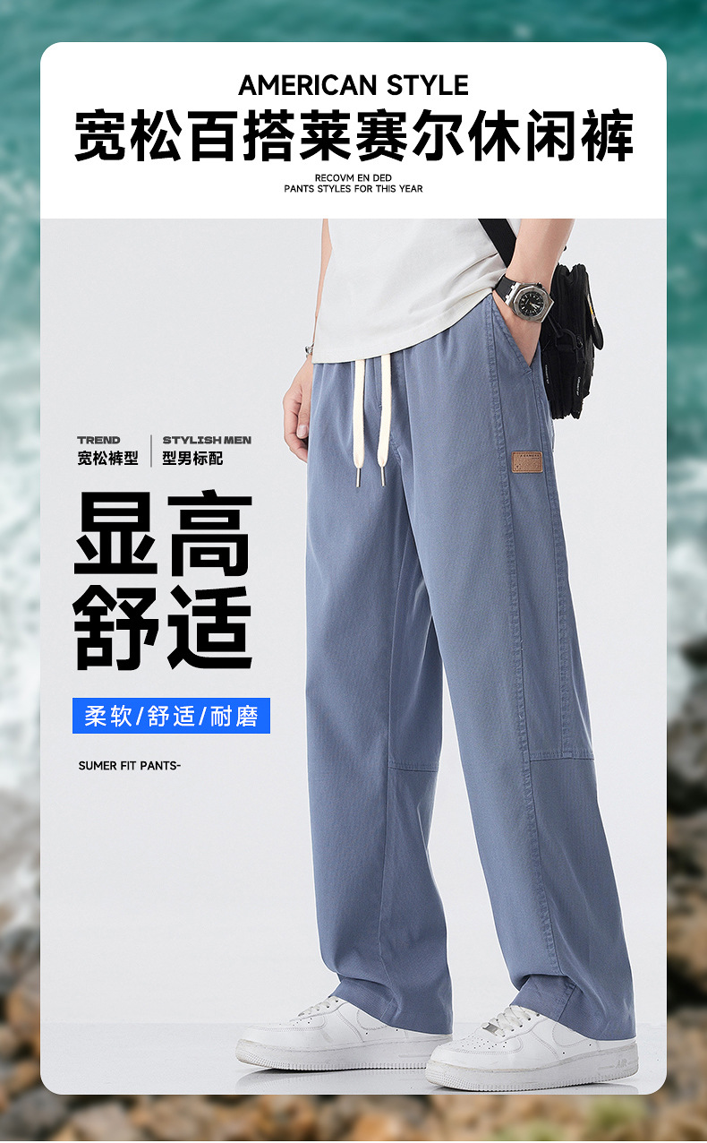 아이스 실크 청바지 남자 2025 새로운 Lyocell 느슨한 직선 다리 스포츠 캐주얼 바지 남자 봄과 여름 바지