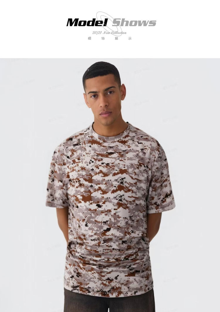 여름 위장 반팔 얇은 티셔츠 남자와 여자의 같은 스타일 유럽과 미국 스타일 아이스 실크 빠른 건조 운동복 반팔 티셔츠 탑스토어 가기