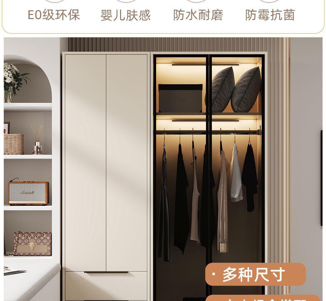 옷장 홈 침실 새로운 작은 아파트 간단한 조합 옷장 빛 고급 하이 엔드 센스 단일 저장 캐비닛