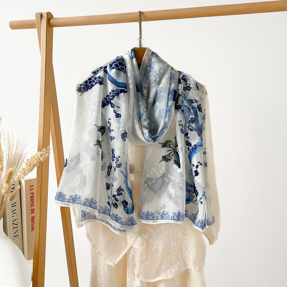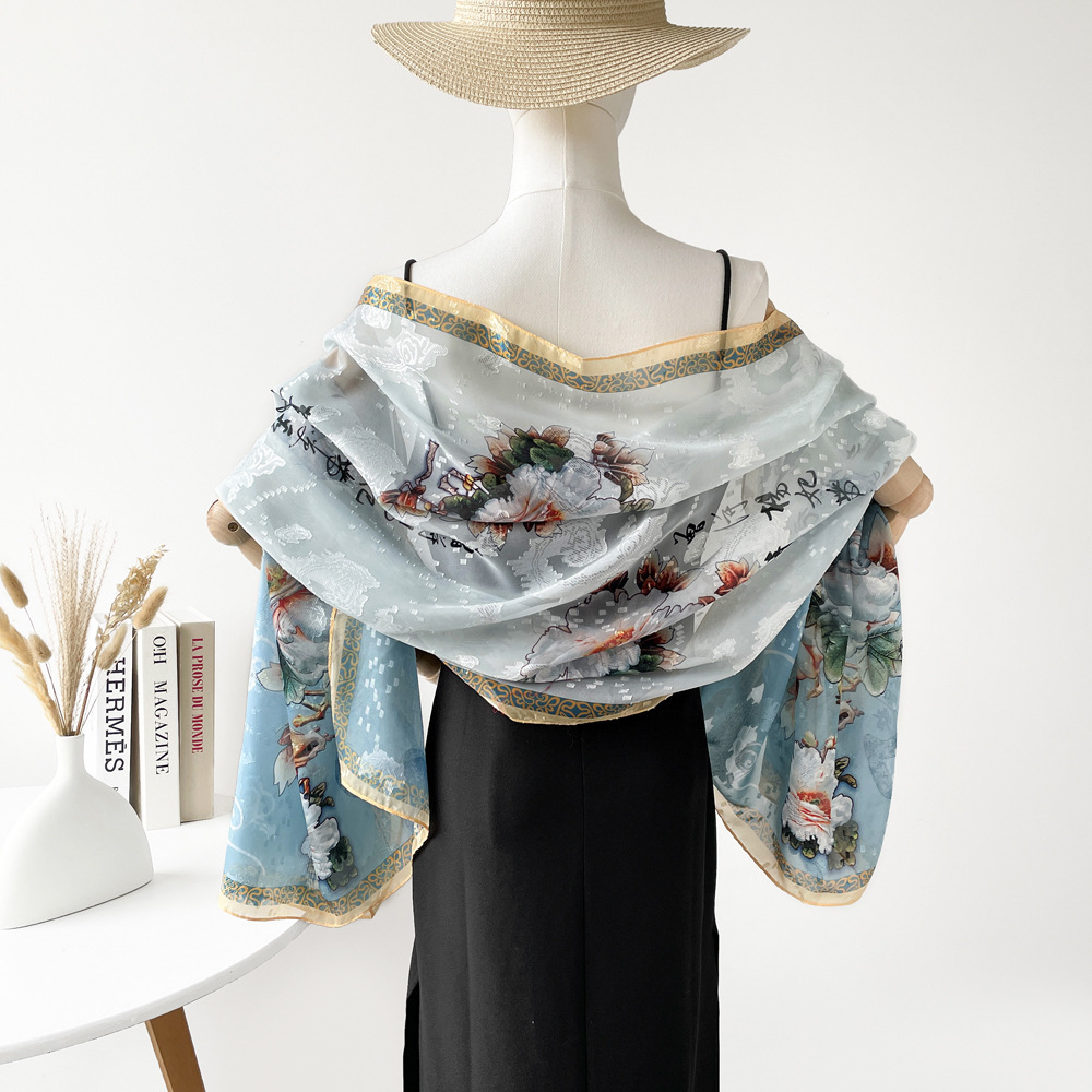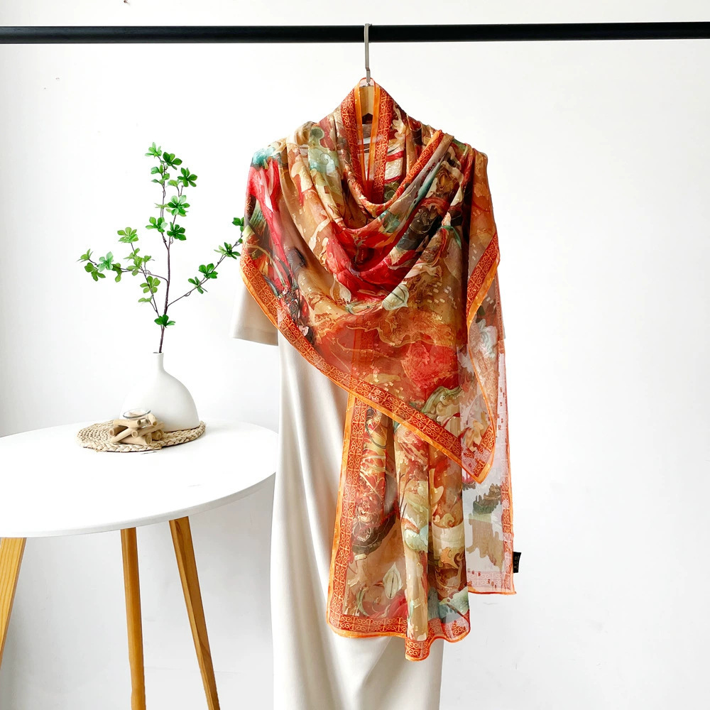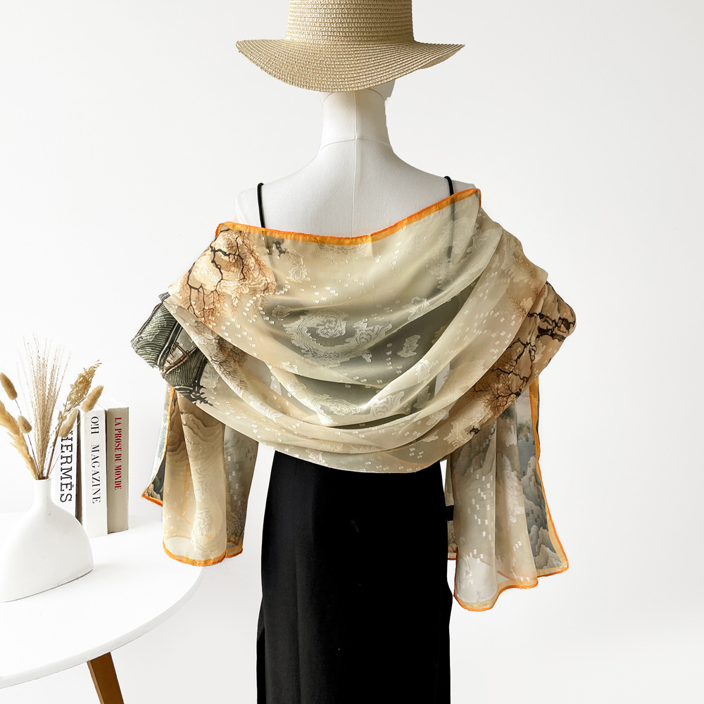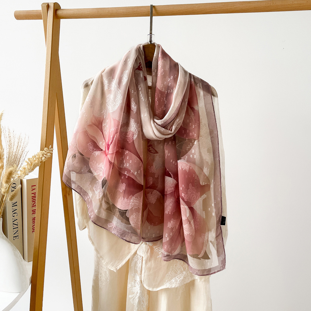 전국 타이드 그린 할로우 컷 꽃 저녁 식사 목도리 여성의 새로운 공예 인쇄 실크 스카프 고급 웨딩 스카프스토어 가기