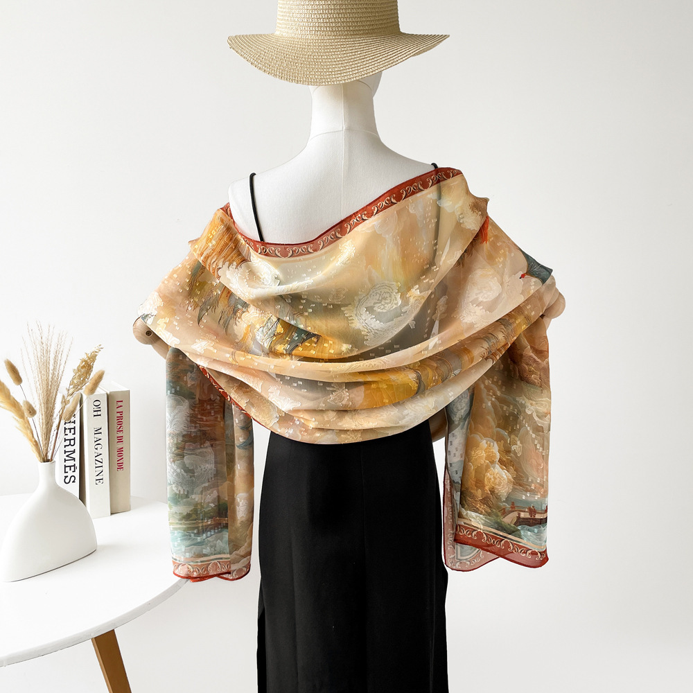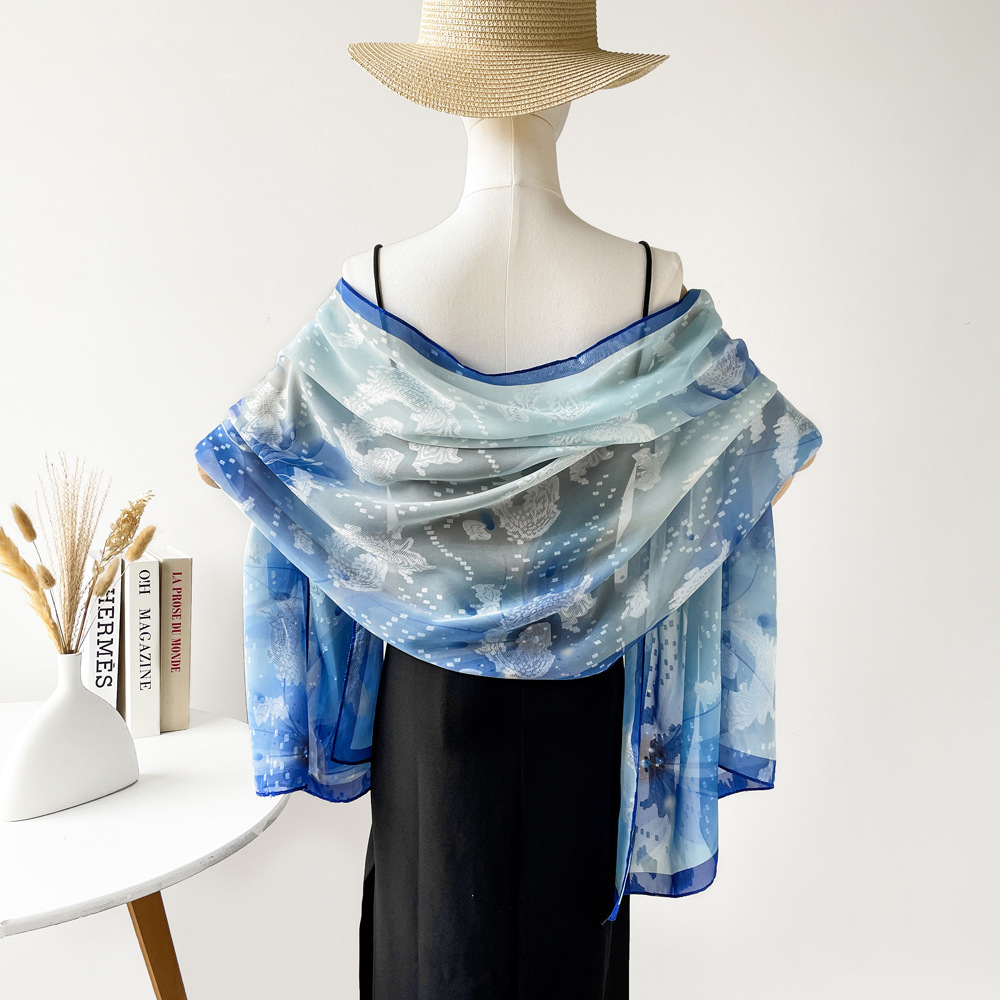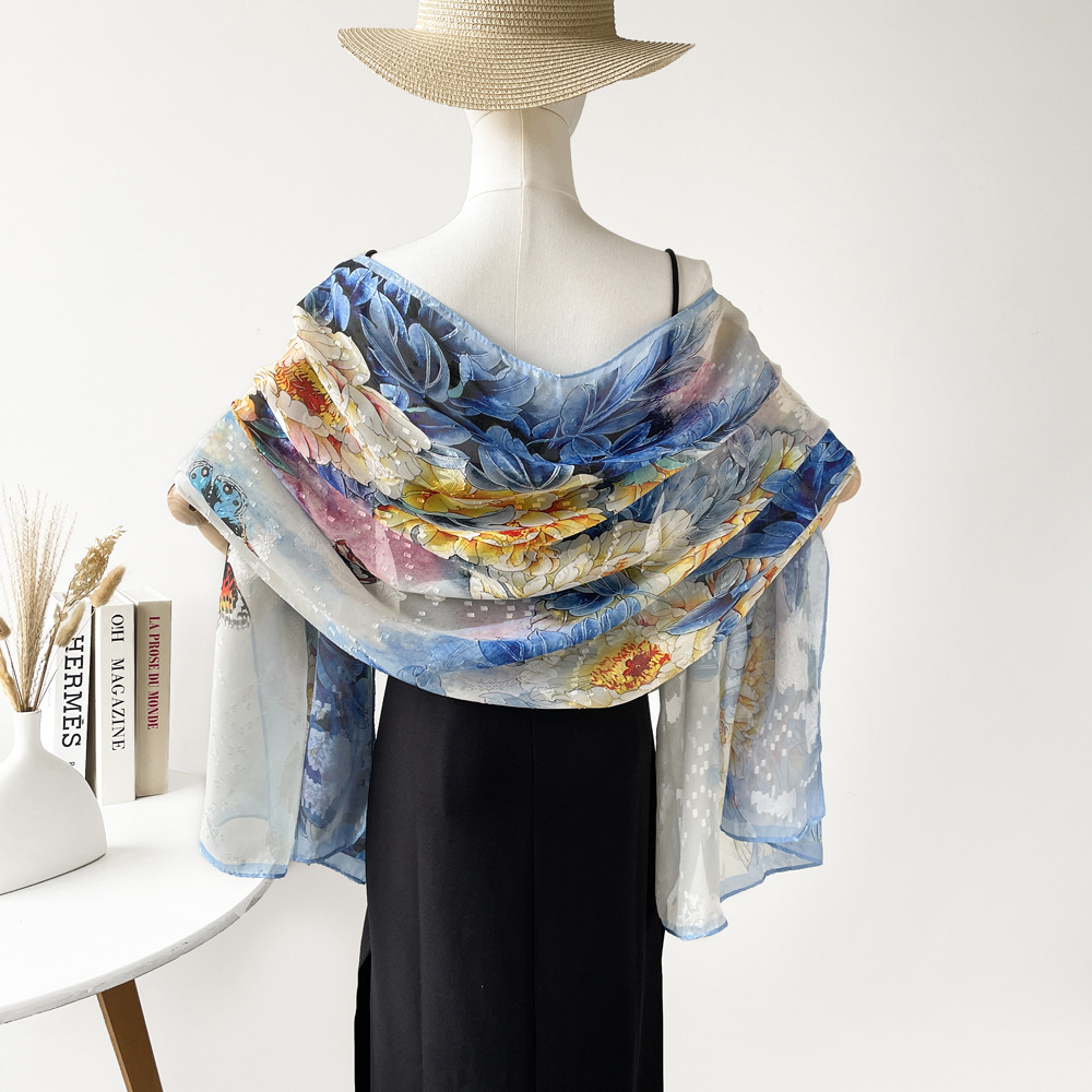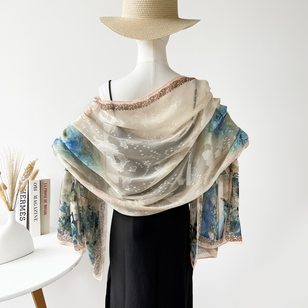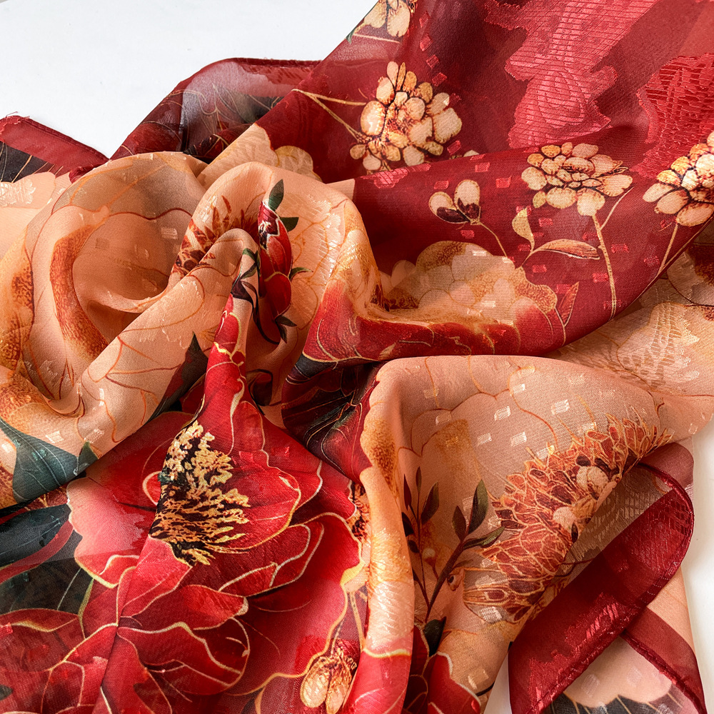 전국 타이드 그린 할로우 컷 꽃 저녁 식사 목도리 여성의 새로운 공예 인쇄 실크 스카프 고급 웨딩 스카프