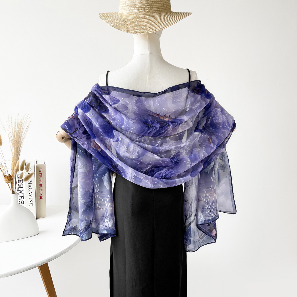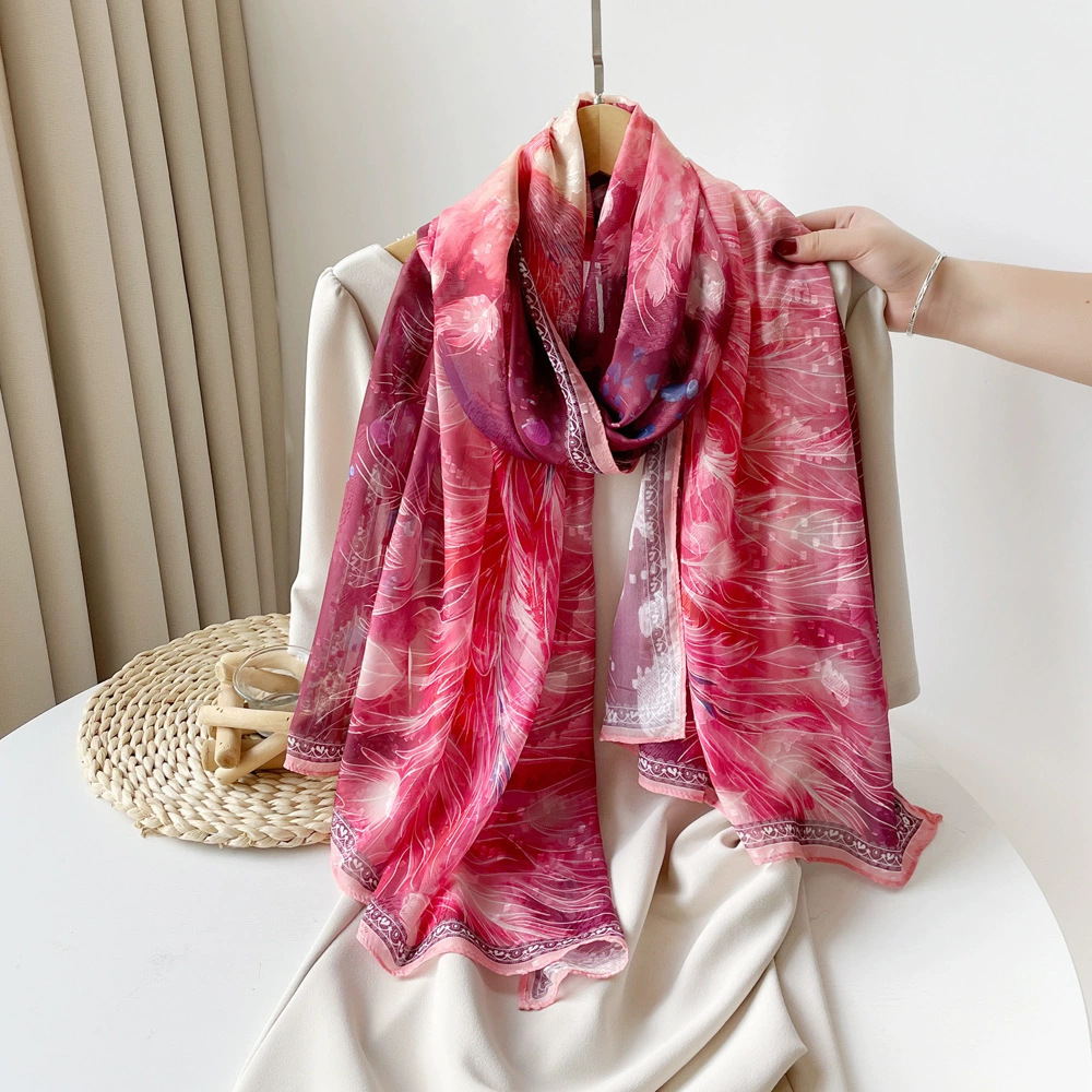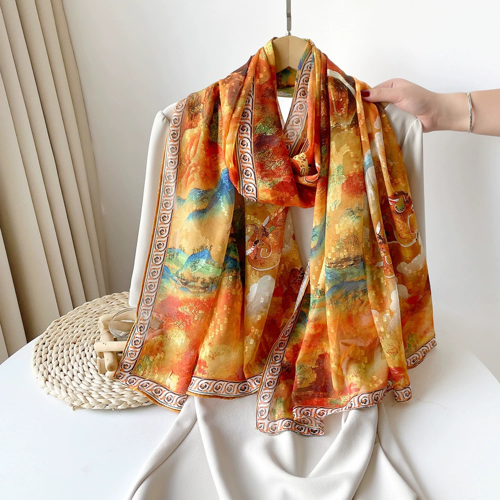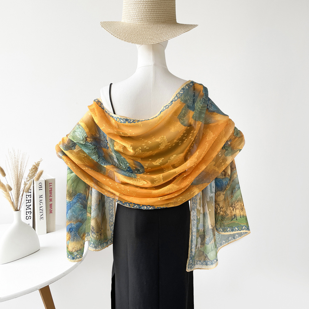 전국 타이드 그린 할로우 컷 꽃 저녁 식사 목도리 여성의 새로운 공예 인쇄 실크 스카프 고급 웨딩 스카프