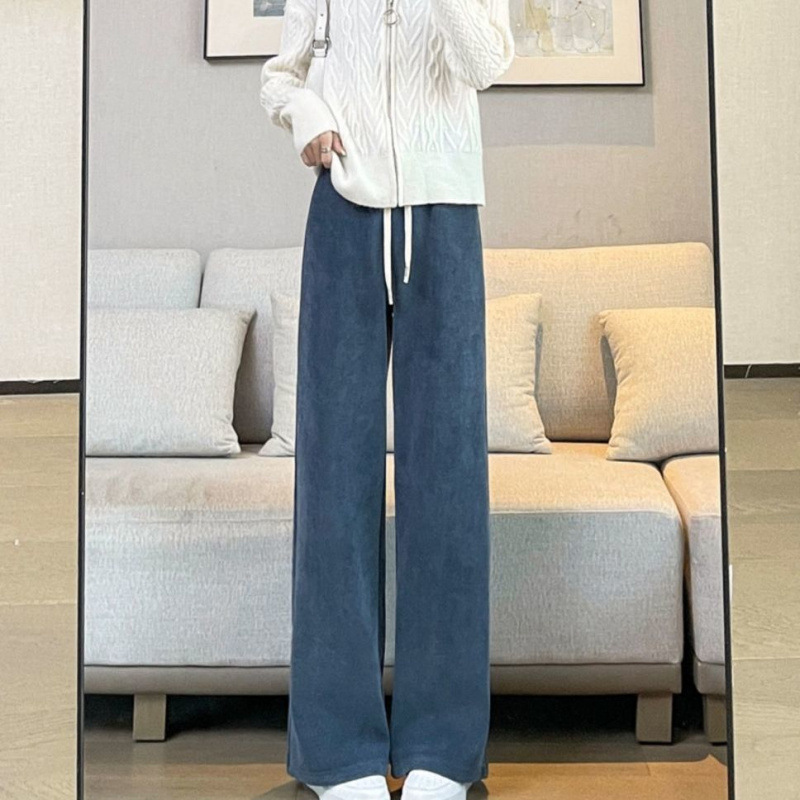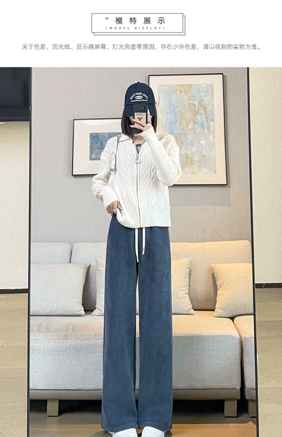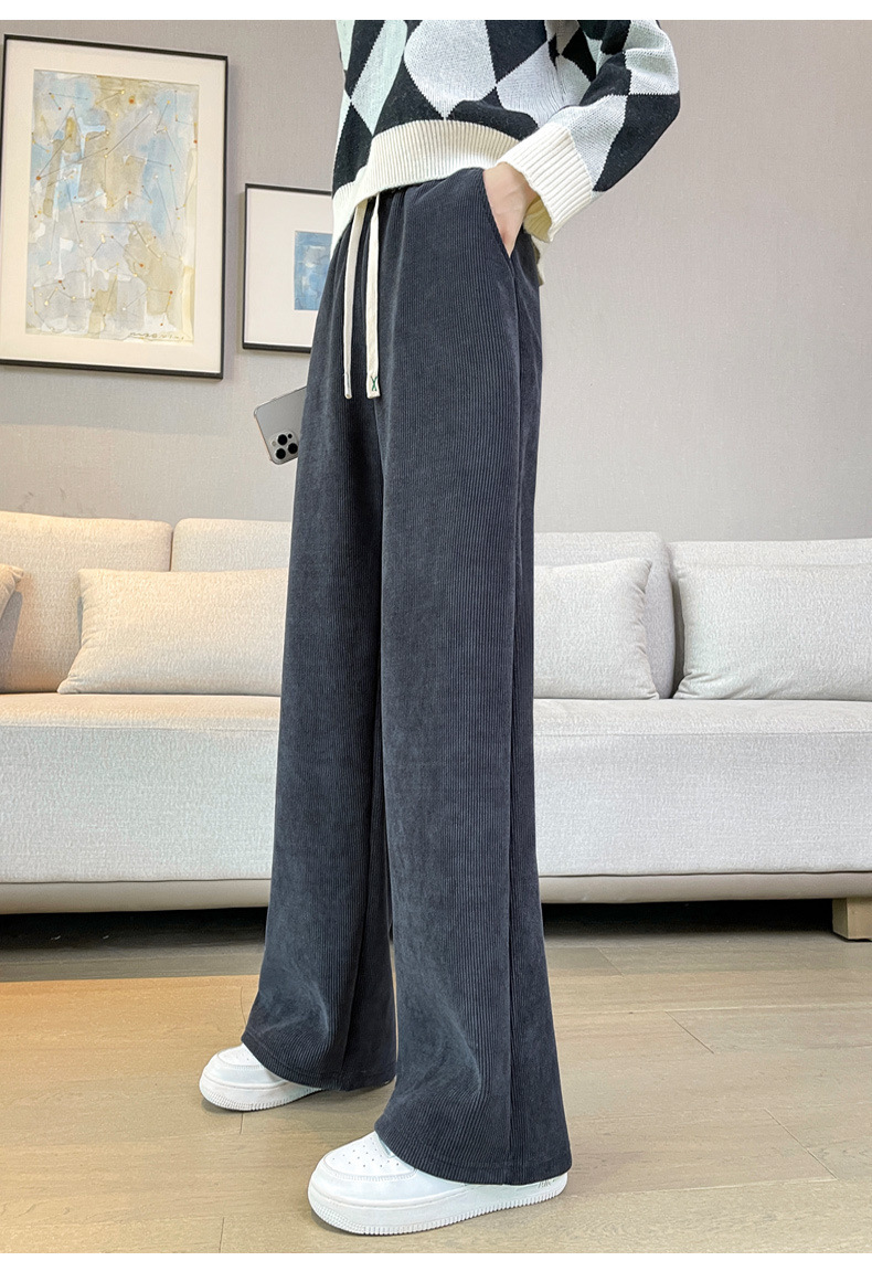 키가 큰 바지 좁은 코듀로이 넓은 다리 바지 여성의 봄과 가을 두꺼운 높은 허리 슬리밍 느슨한 양조 캐주얼 바닥 걸레 바지스토어 가기