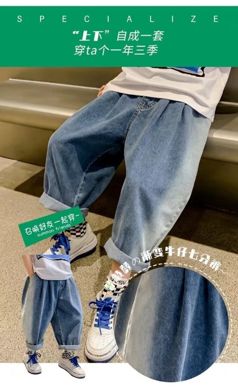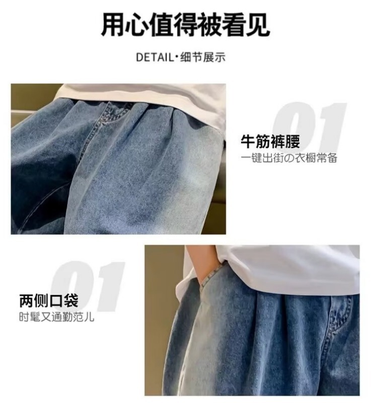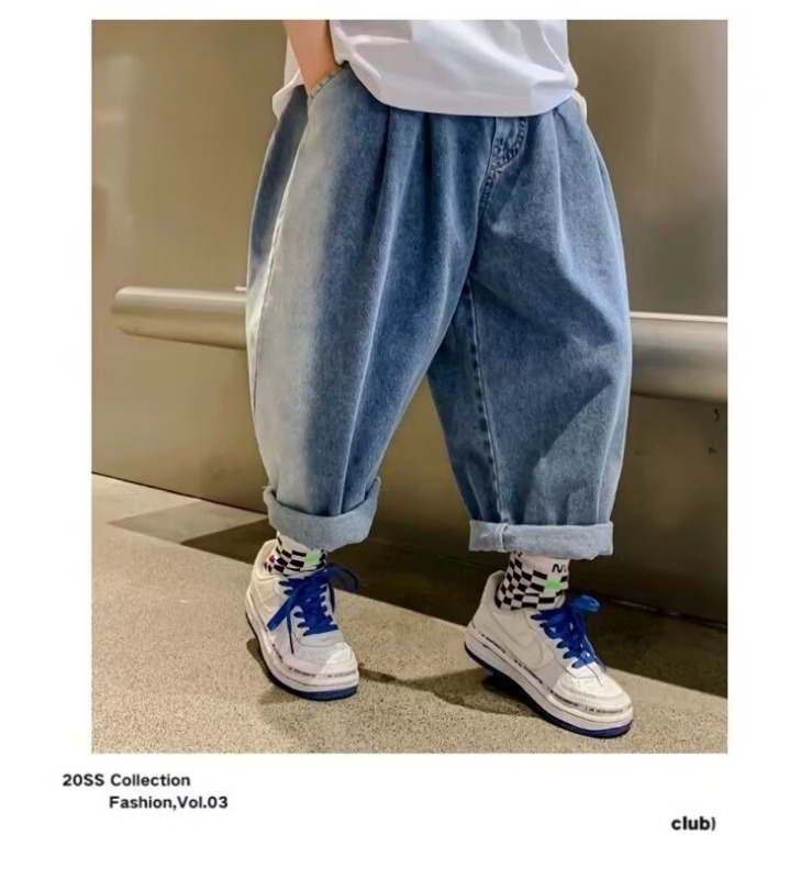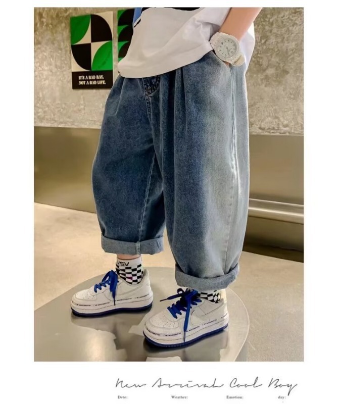 어린이 바지 가을 얇은 소년 스트레이트 다리 청바지 2025 큰 어린이를위한 새로운 유행 넓은 다리 바지스토어 가기
