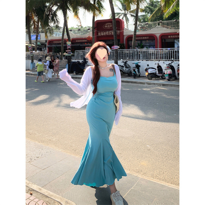 플러스 사이즈 휴일 세트 여성 프랑스 스타일 디자인 뒤로 나비 속이 빈 섹시한 캐주얼 원피스 카디건 투피스 세트