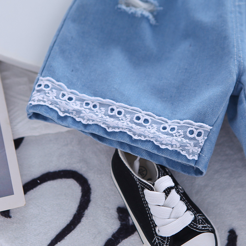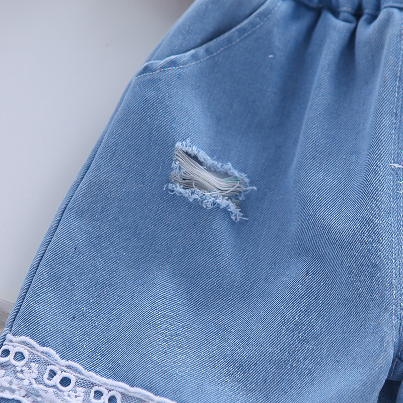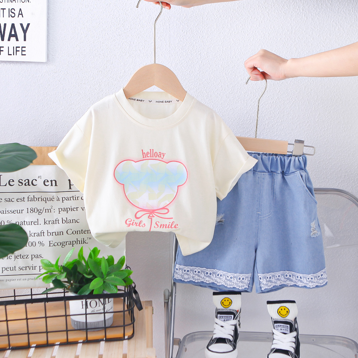 대외 무역 소녀 여름 패션 귀여운 0-6 세 컬러 인쇄 면 반팔 청바지 공장 유행 여성 세트스토어 가기