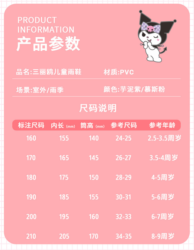 멜로디 어린이 장화 사계절 만화 쿨로 미 소녀 장화 미끄럼 방지 아동용 미끄럼 방지 고무 신발 베이비 워터 슈즈