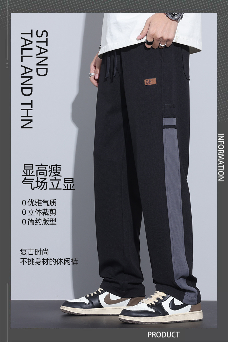 2024 여름 대비 캐주얼 바지 남자 올매치 매달린 남자 트렌디 한 핸섬 느슨한 와이드 레그 바지스토어 가기