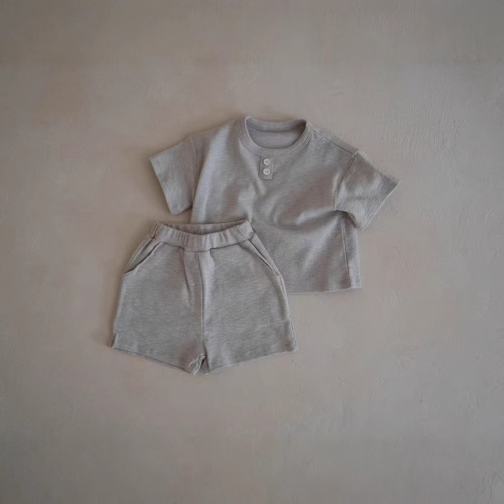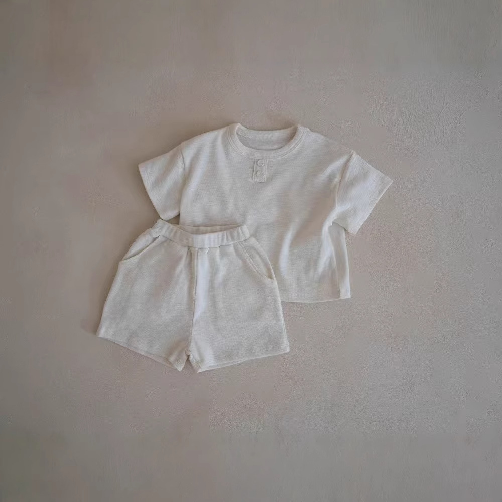 한국식 Ins 단색 따뜻한 색조 여름 반팔 반바지 세트 남녀 아기 서양식 트렌디 티셔츠 케이스 단순 올매치