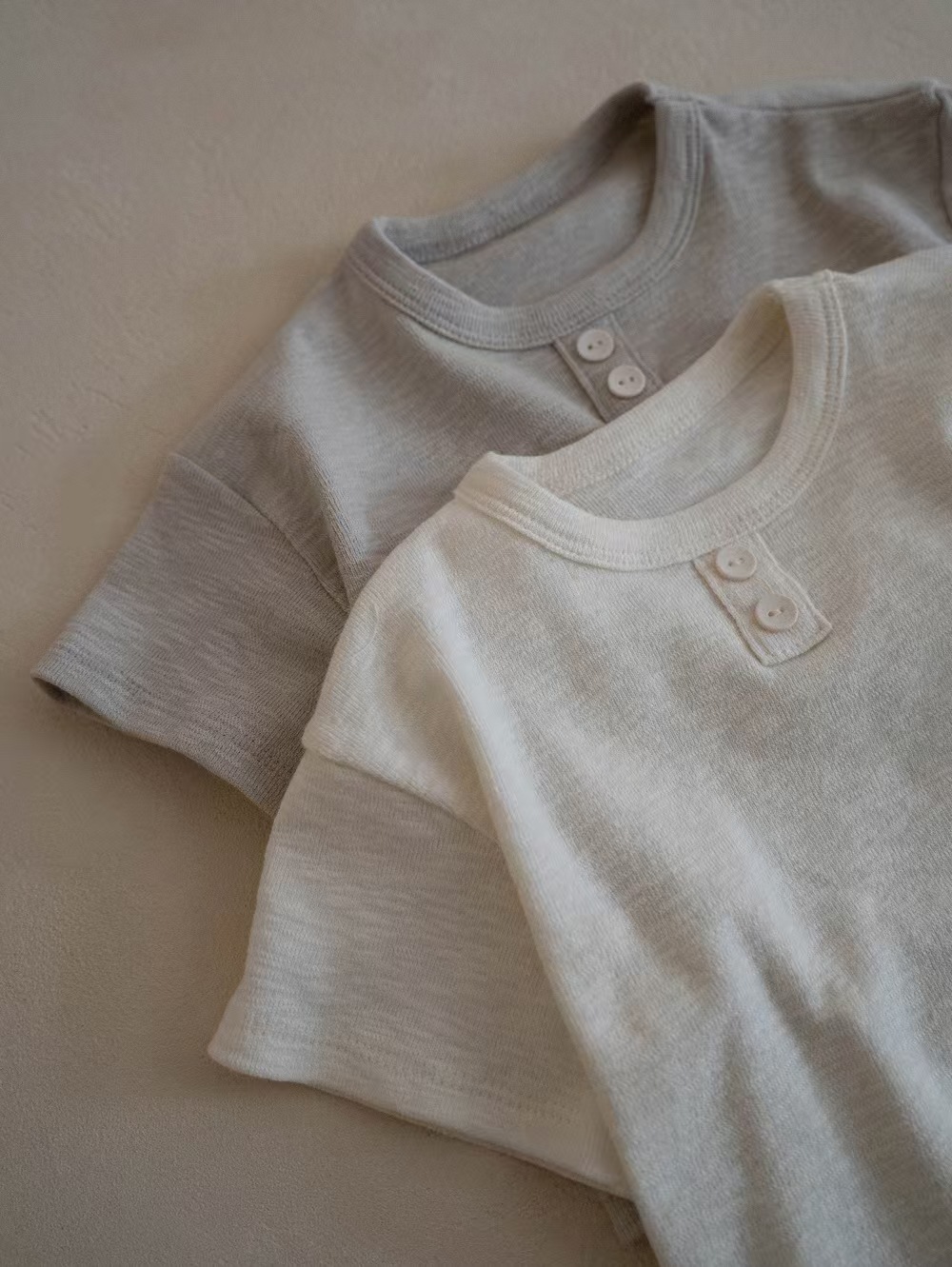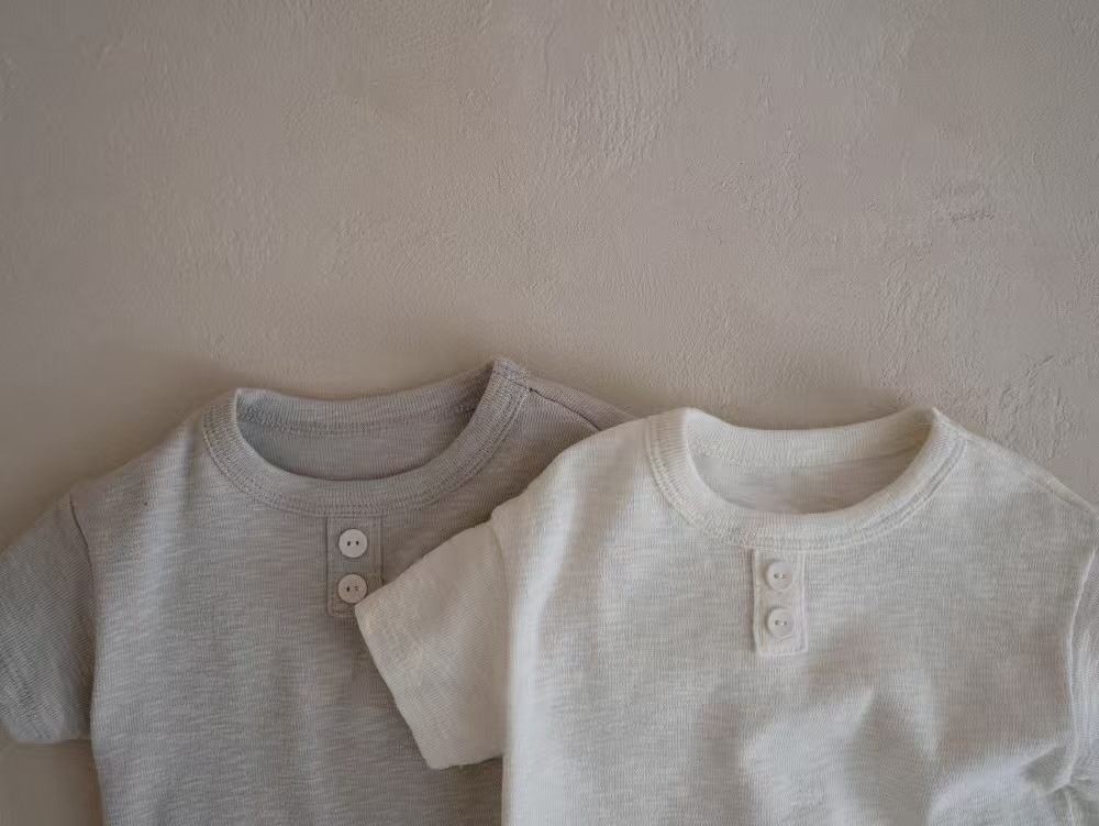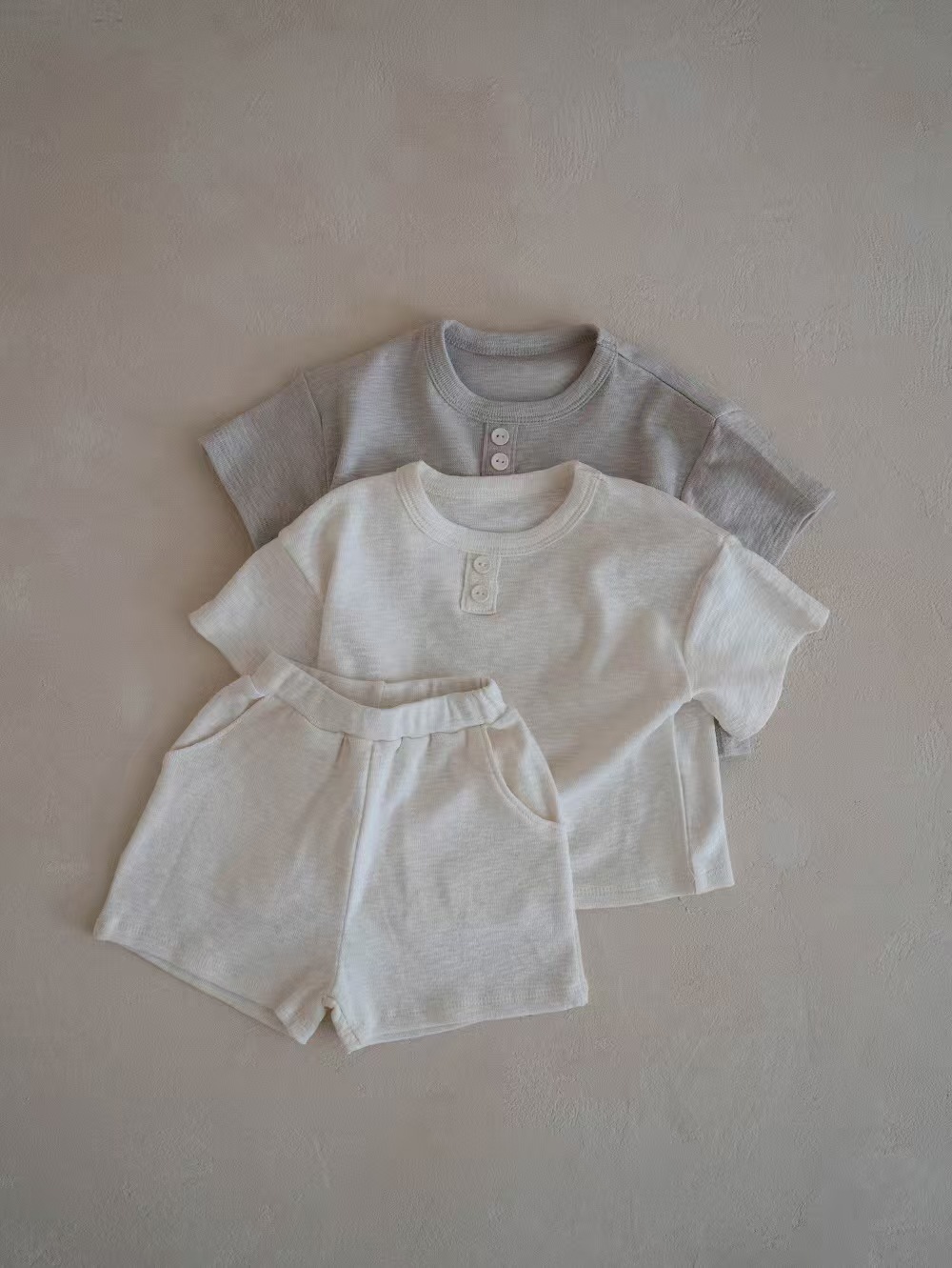 한국식 Ins 단색 따뜻한 색조 여름 반팔 반바지 세트 남녀 아기 서양식 트렌디 티셔츠 케이스 단순 올매치스토어 가기