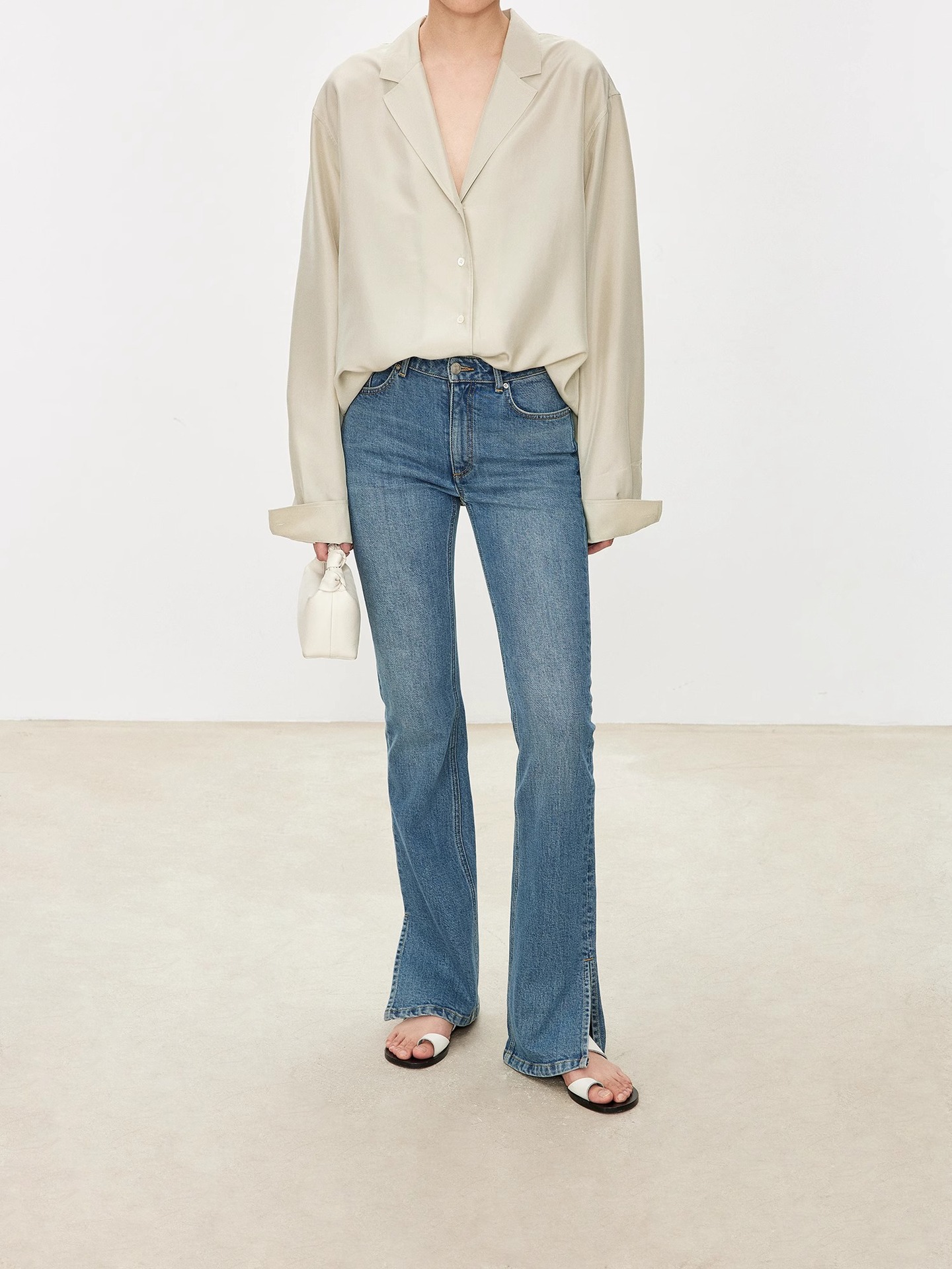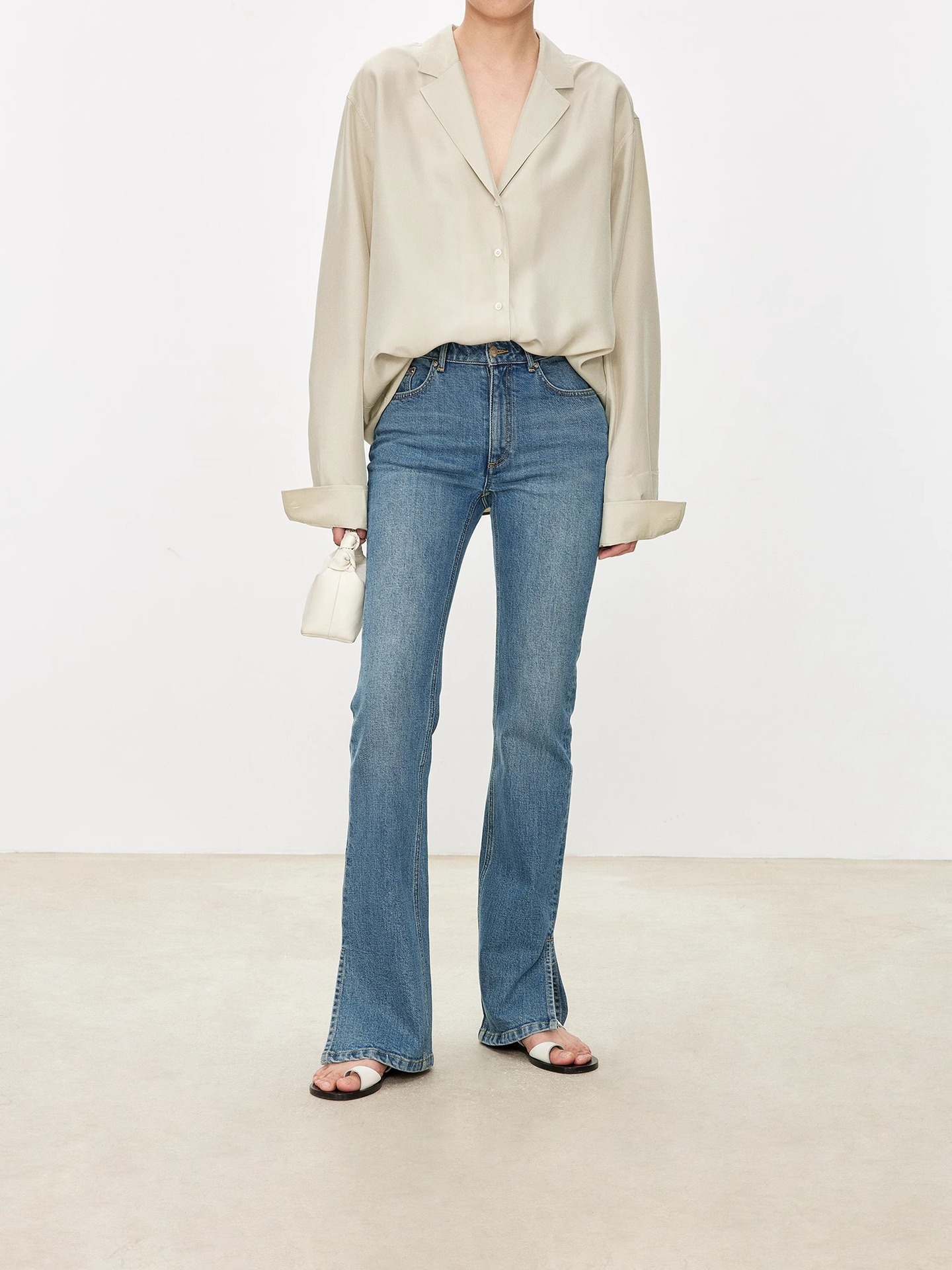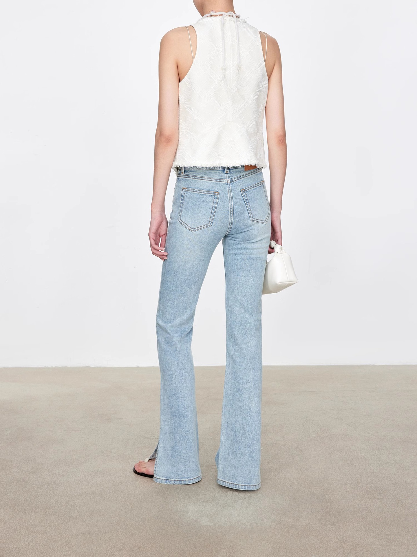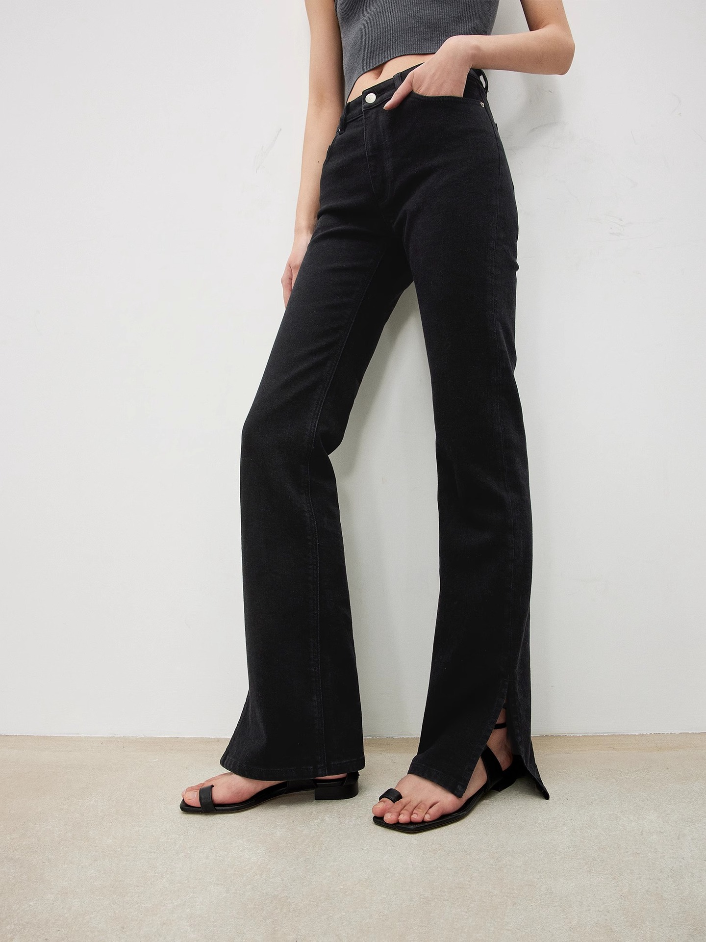 TH~ROW 이탈리안 마이크로 엘라스틱 데님 마이크로 플레어 팬츠, 클래식한 슬림핏 사이드 슬릿 슬리밍 여성용 하이웨이스트 청바지스토어 가기