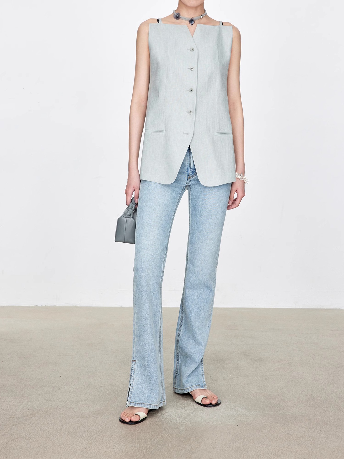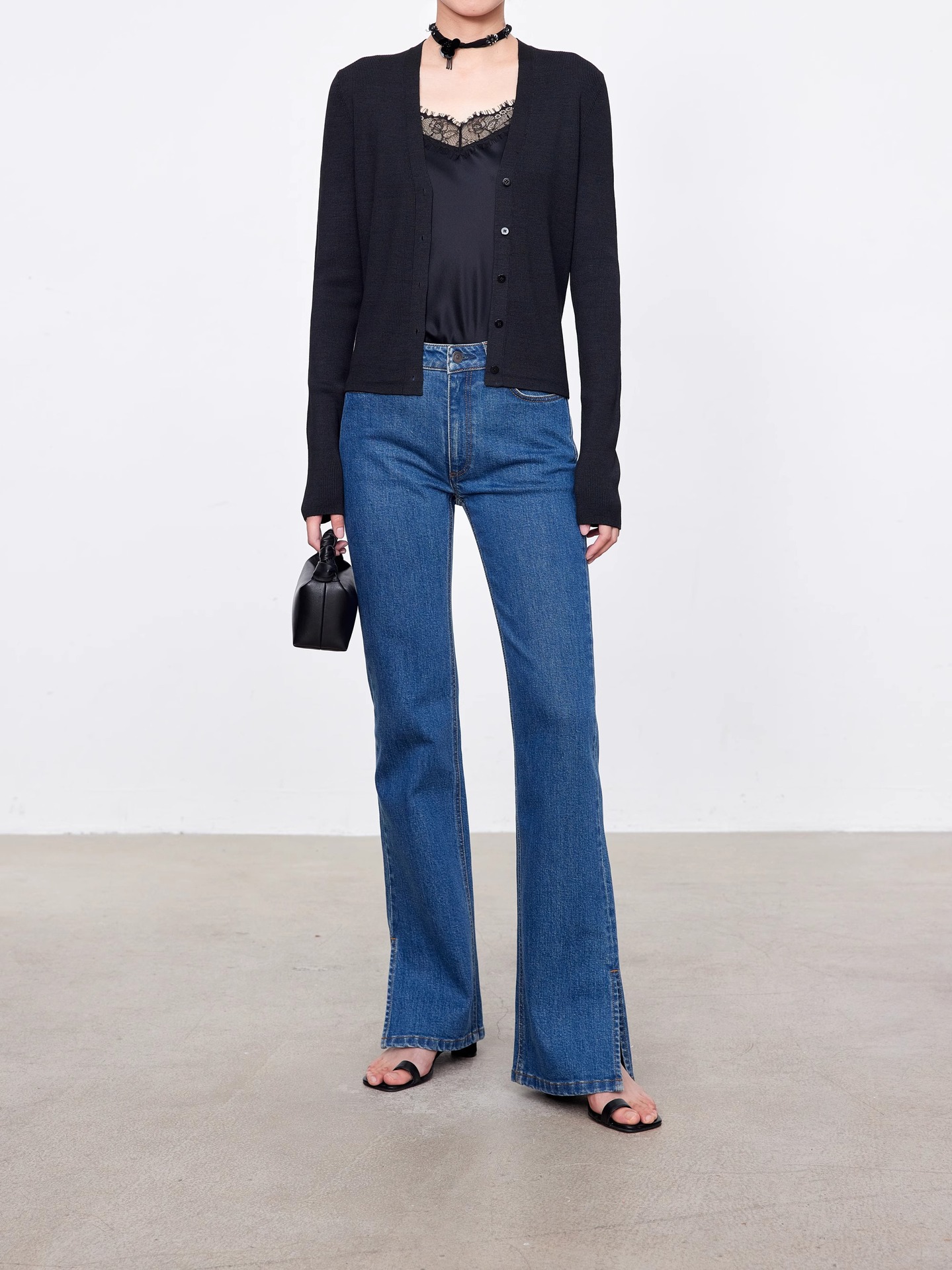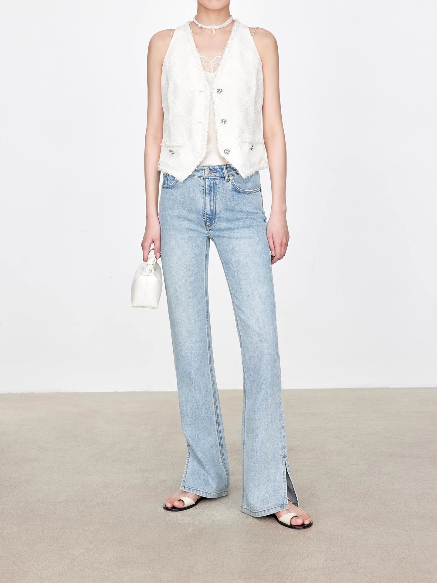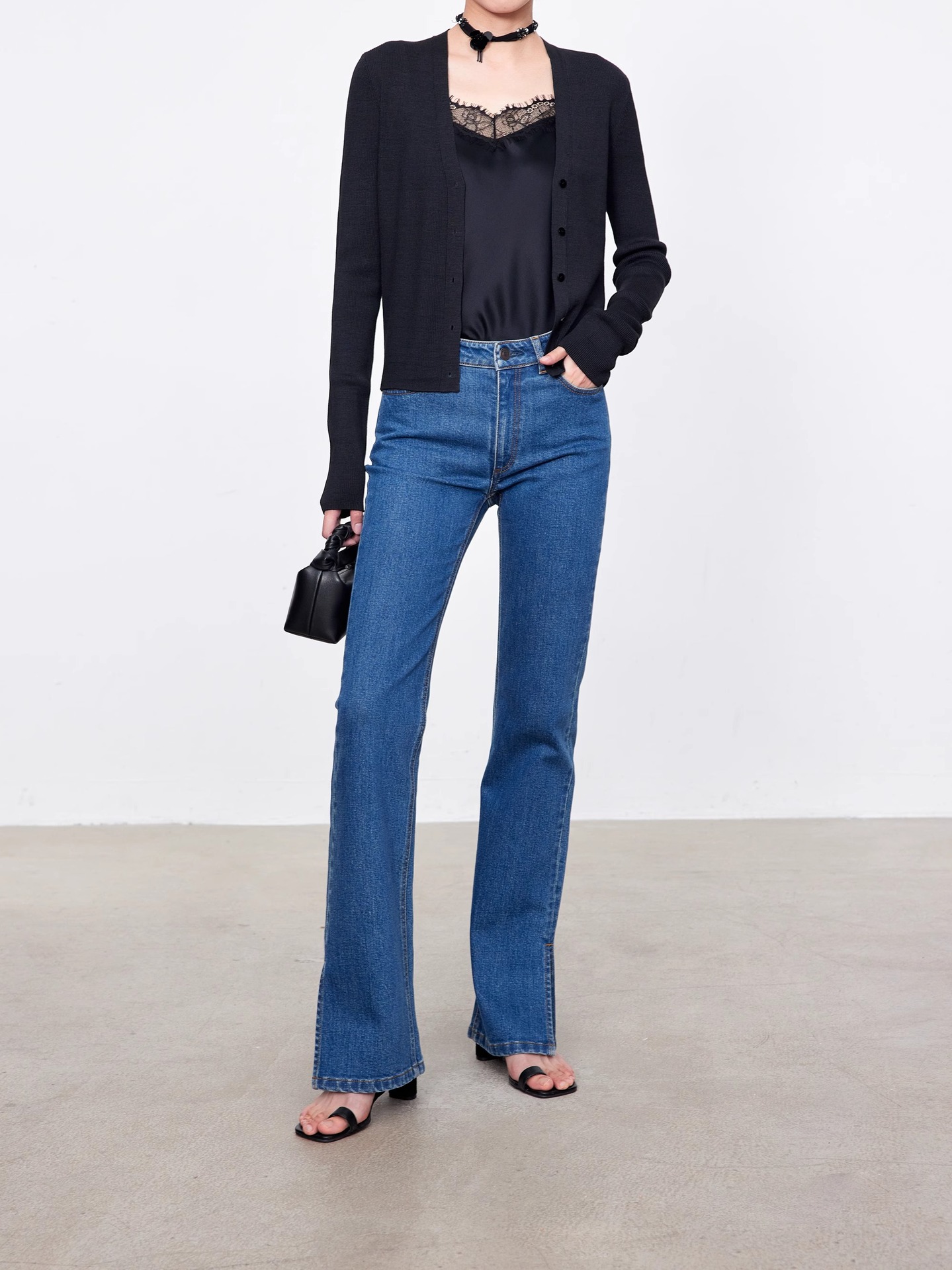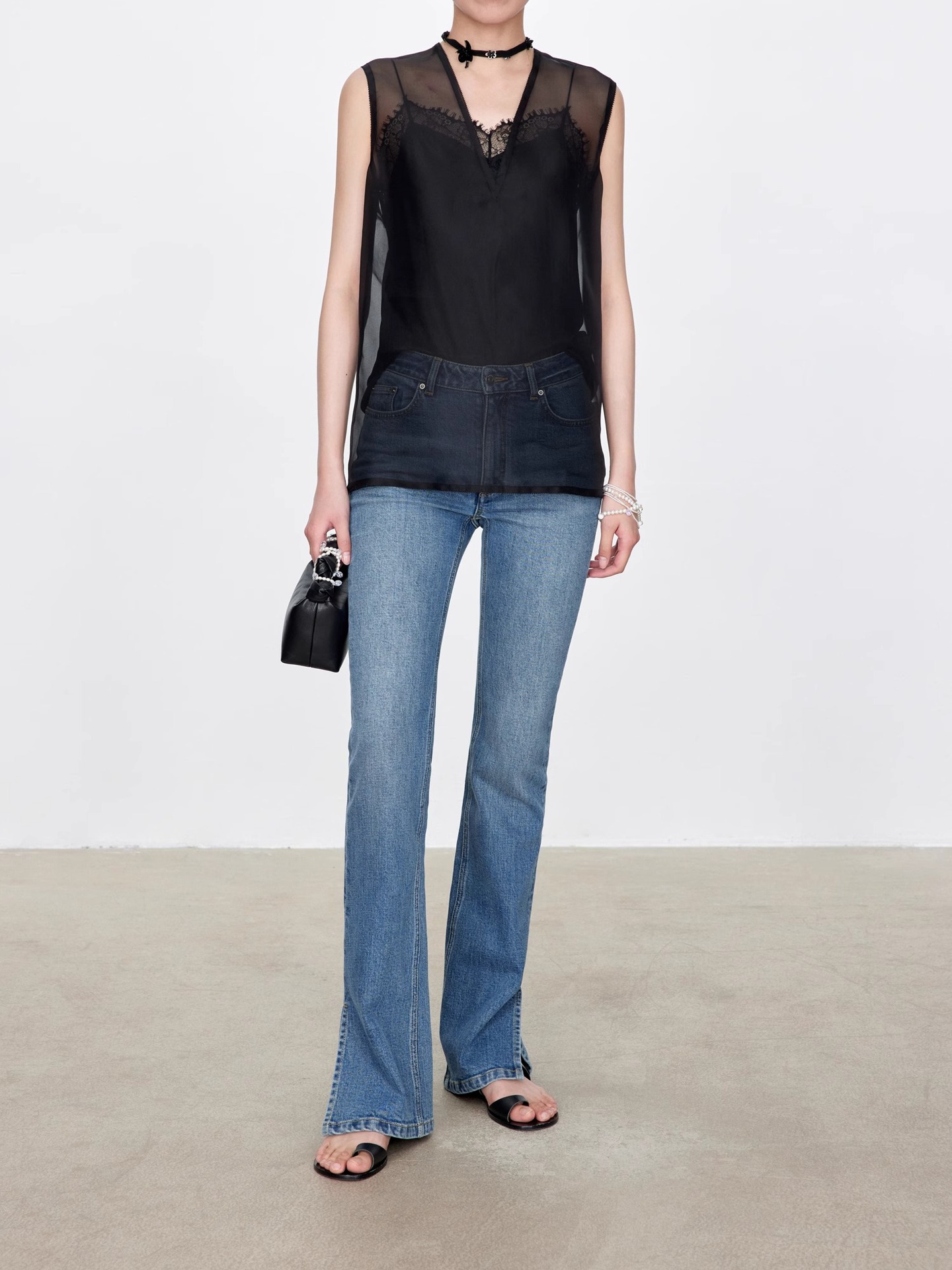 TH~ROW 이탈리안 마이크로 엘라스틱 데님 마이크로 플레어 팬츠, 클래식한 슬림핏 사이드 슬릿 슬리밍 여성용 하이웨이스트 청바지스토어 가기