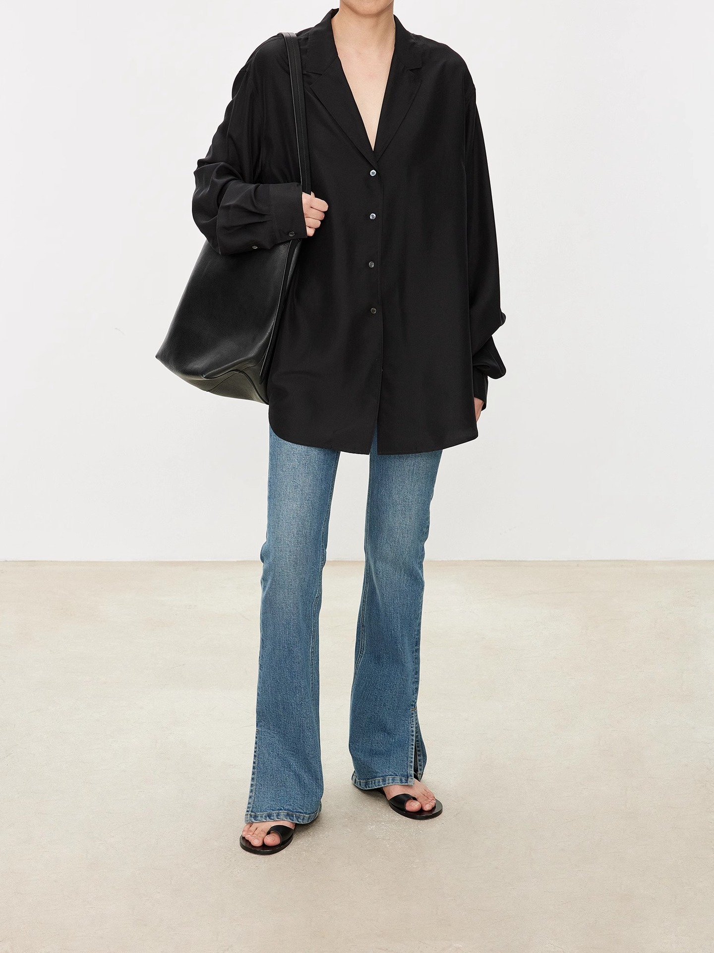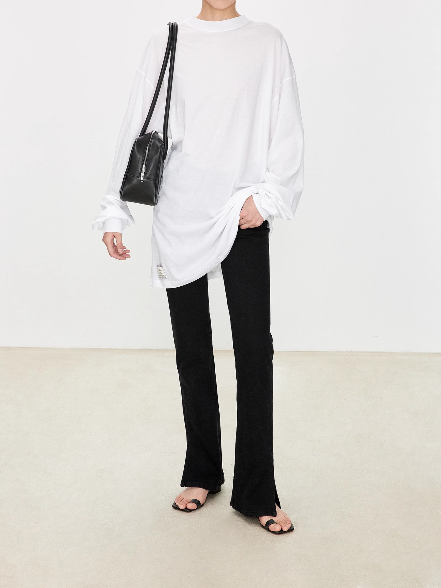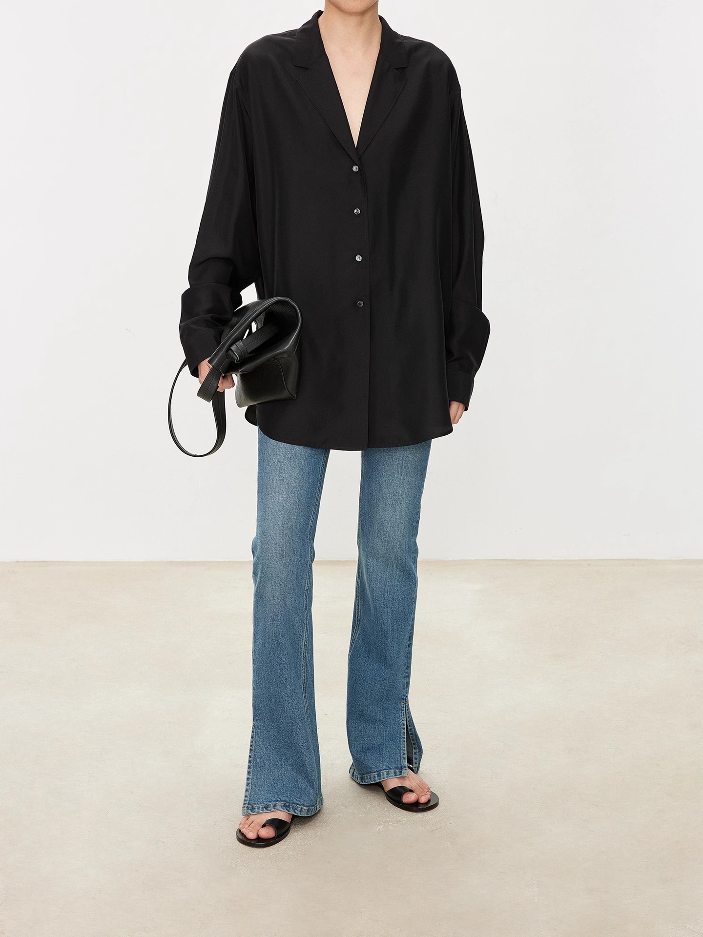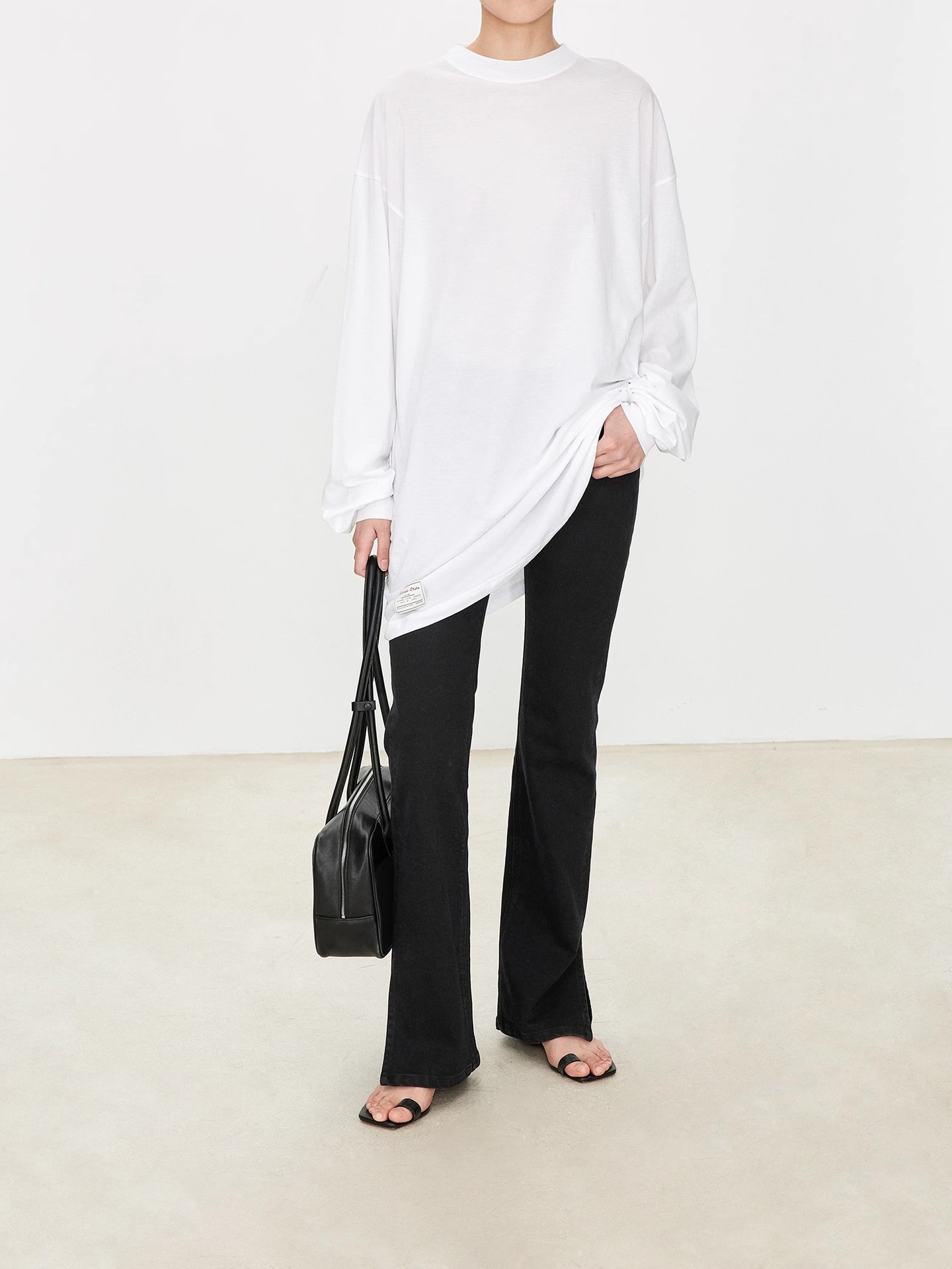 TH~ROW 이탈리안 마이크로 엘라스틱 데님 마이크로 플레어 팬츠, 클래식한 슬림핏 사이드 슬릿 슬리밍 여성용 하이웨이스트 청바지스토어 가기