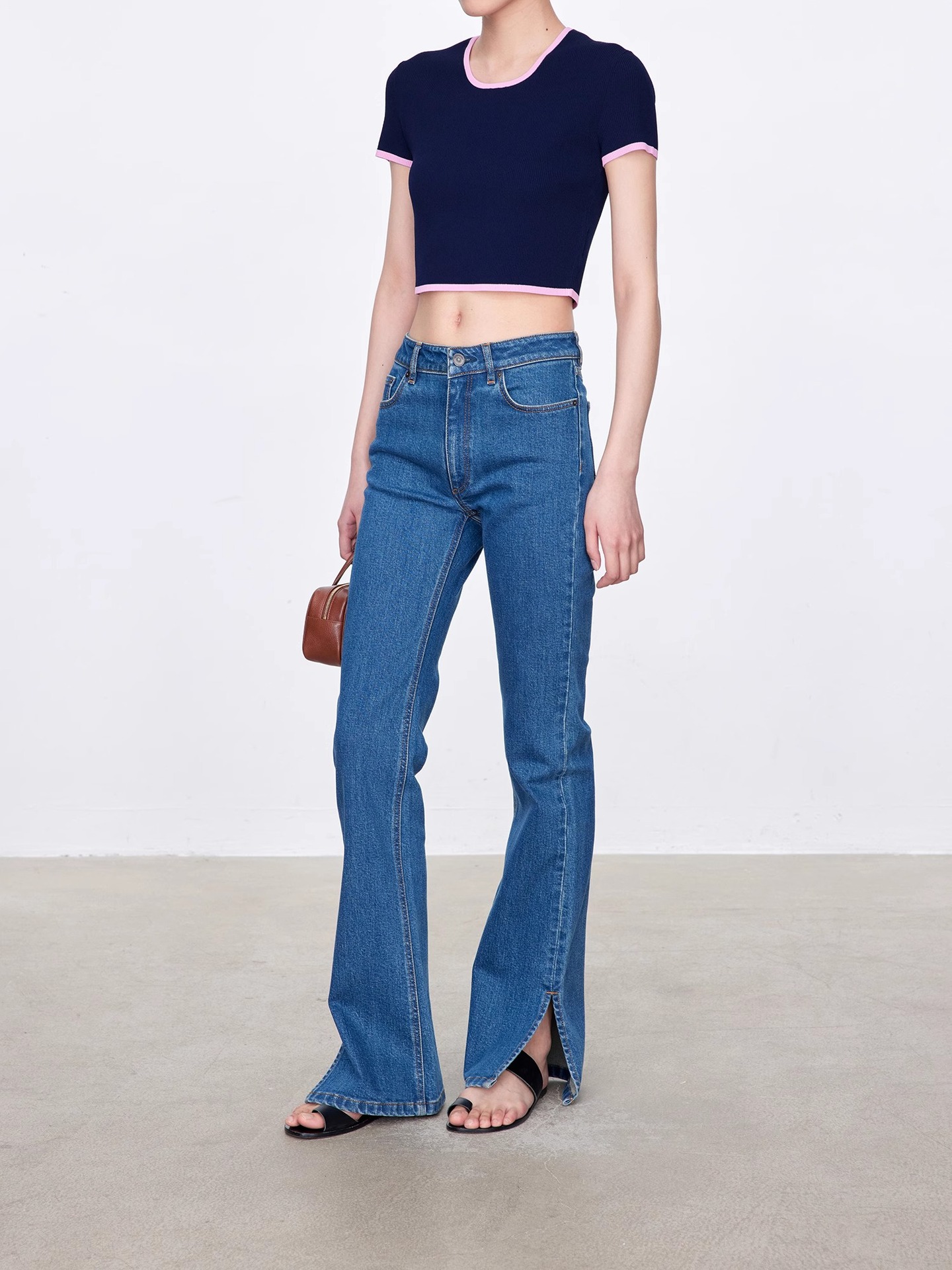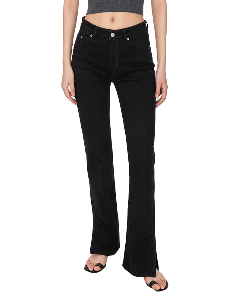 TH~ROW 이탈리안 마이크로 엘라스틱 데님 마이크로 플레어 팬츠, 클래식한 슬림핏 사이드 슬릿 슬리밍 여성용 하이웨이스트 청바지