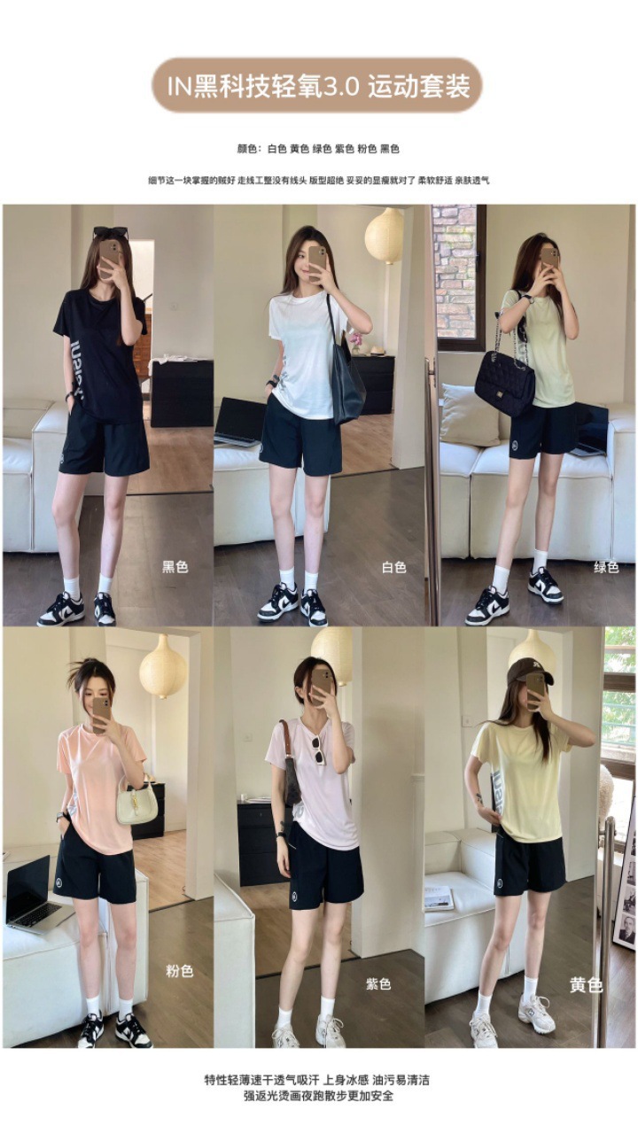 IN 블랙 테크놀로지 라이트 산소 3.0 스포츠 세트 여성 여름 통기성 달리기 빠른 건조 야외 반팔 반바지스토어 가기