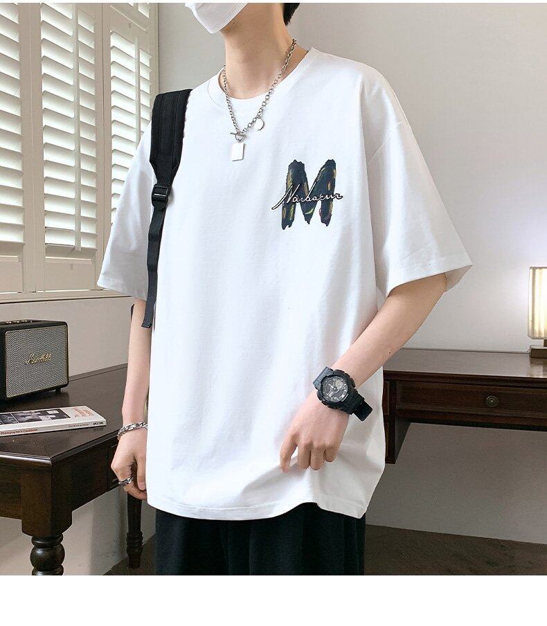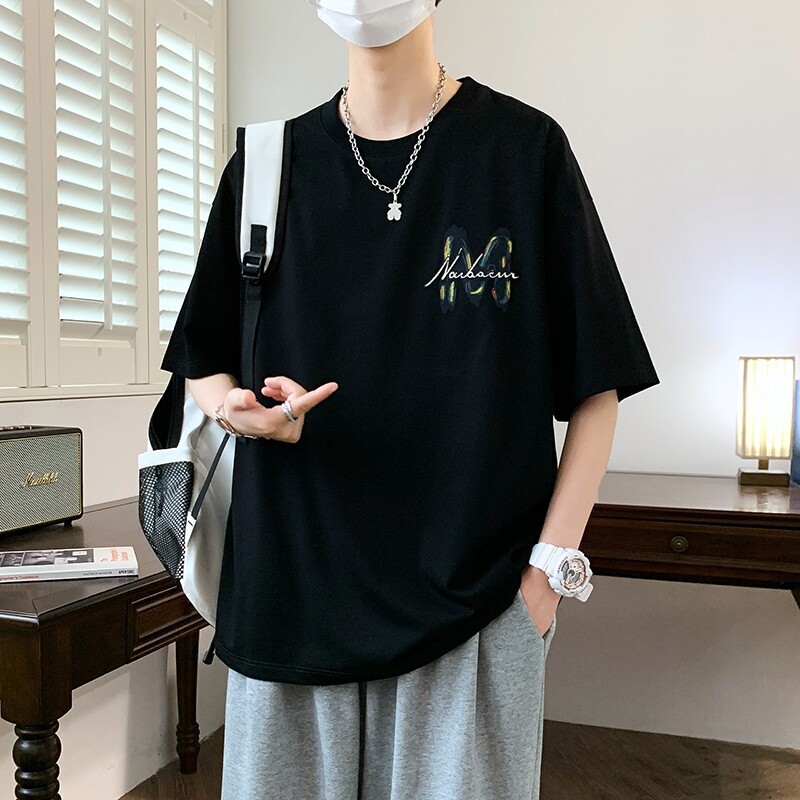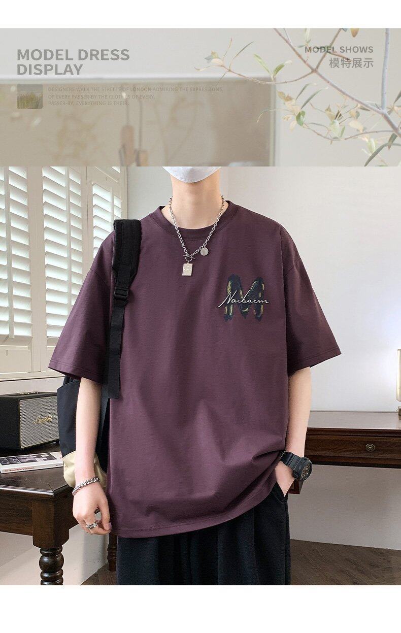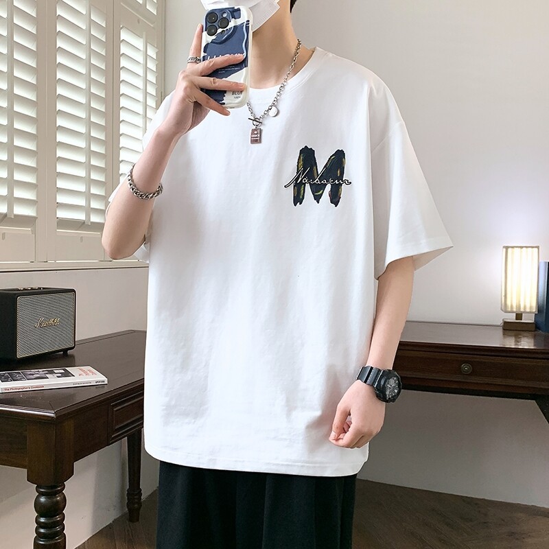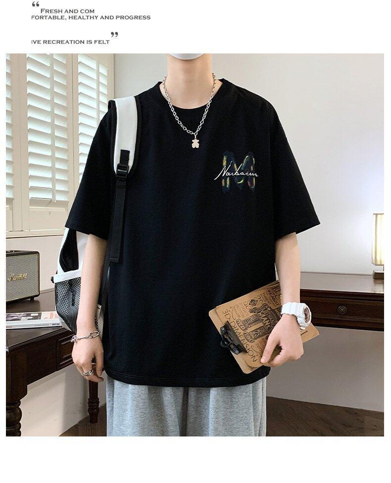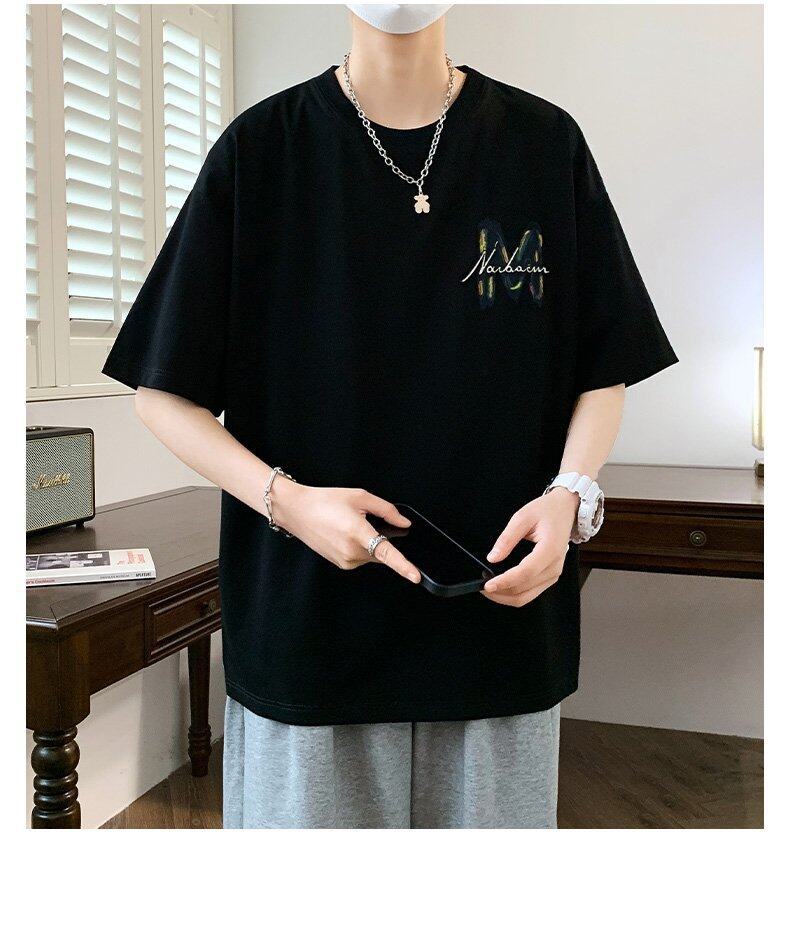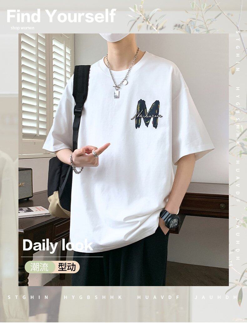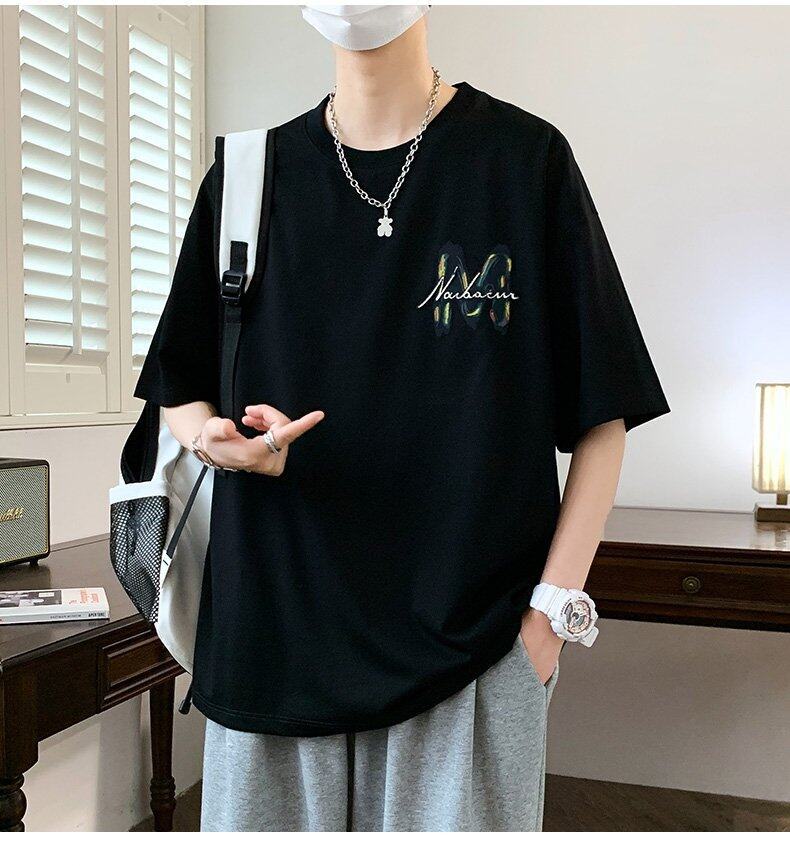 국경 간 무역 세대 AliExpress 인기 남성 의류 [신규] 여름 캐주얼 패션 티셔츠 남성용 반팔 바닥 셔츠스토어 가기